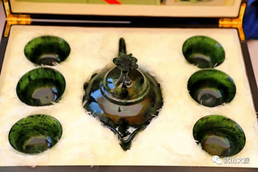 武山玉器:武山素有“众山皆藏玉”的称誉。武山鸳鸯峡出产的玉称鸳鸯玉。武山玉雕在以“夜光杯”为主的同时,还生产玉雕人物花卉山水、飞禽走兽、炉瓶、文房用品、茶具等旅游纪念品和实用工艺品。