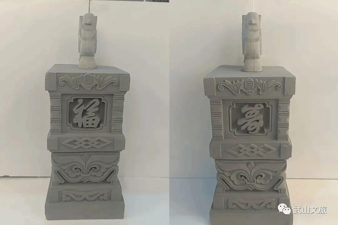 城关砖雕:精选烧好的青砖,用刻刀刻制成各种图案,一个图案往往把十几块甚至几十块青砖拼接在一起。巧妙的将书法、绘画和雕刻融为一体,吸取了木雕、石雕、玉雕等雕刻艺术的手法,形成了独特的艺术风格。