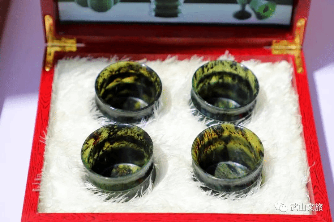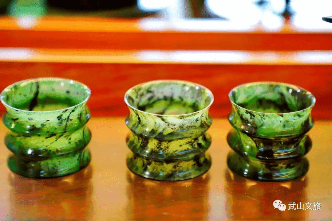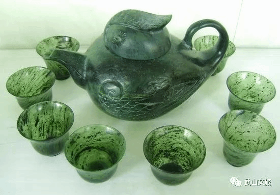 武山玉器:武山素有“众山皆藏玉”的称誉。武山鸳鸯峡出产的玉称鸳鸯玉。武山玉雕在以“夜光杯”为主的同时,还生产玉雕人物花卉山水、飞禽走兽、文房四宝、茶具等旅游纪念品和实用工艺品。