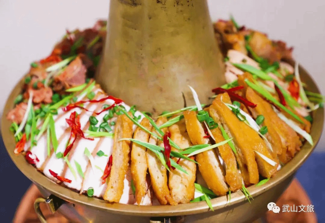 武山暖锅:武山暖锅是季节性美食,通过红烧肉、丸子、夹板肉、排骨、白菜、粉条、豆腐、青菜荤素部分的完美搭配,将暖锅中的美食烧至滚烫,掀开锅盖,香气四溢,口感清淡、咸鲜,形成了美妙的味蕾平衡。