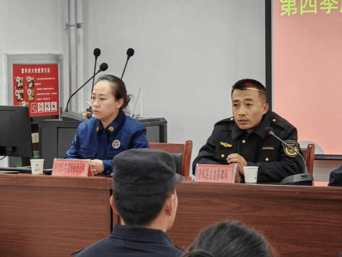 安全培训。消防队工作人员通过理论培训、视频观看、事例讲述的方式对全体干部职工开展了消防安全知识培训。培训内容包括消防器材使用,初期火灾扑救,火灾发生时如何正确逃生等内容。