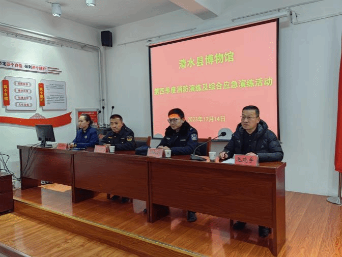 为切实加强文物安全工作、提升火灾及突发事件救援水平,保证游客人身安全,12月14日,清水县博物馆邀请县消防救援大队组织开展了第四季度消防演练活动,并联合县公安局、县应急管理局开展了综合应急演练活动。