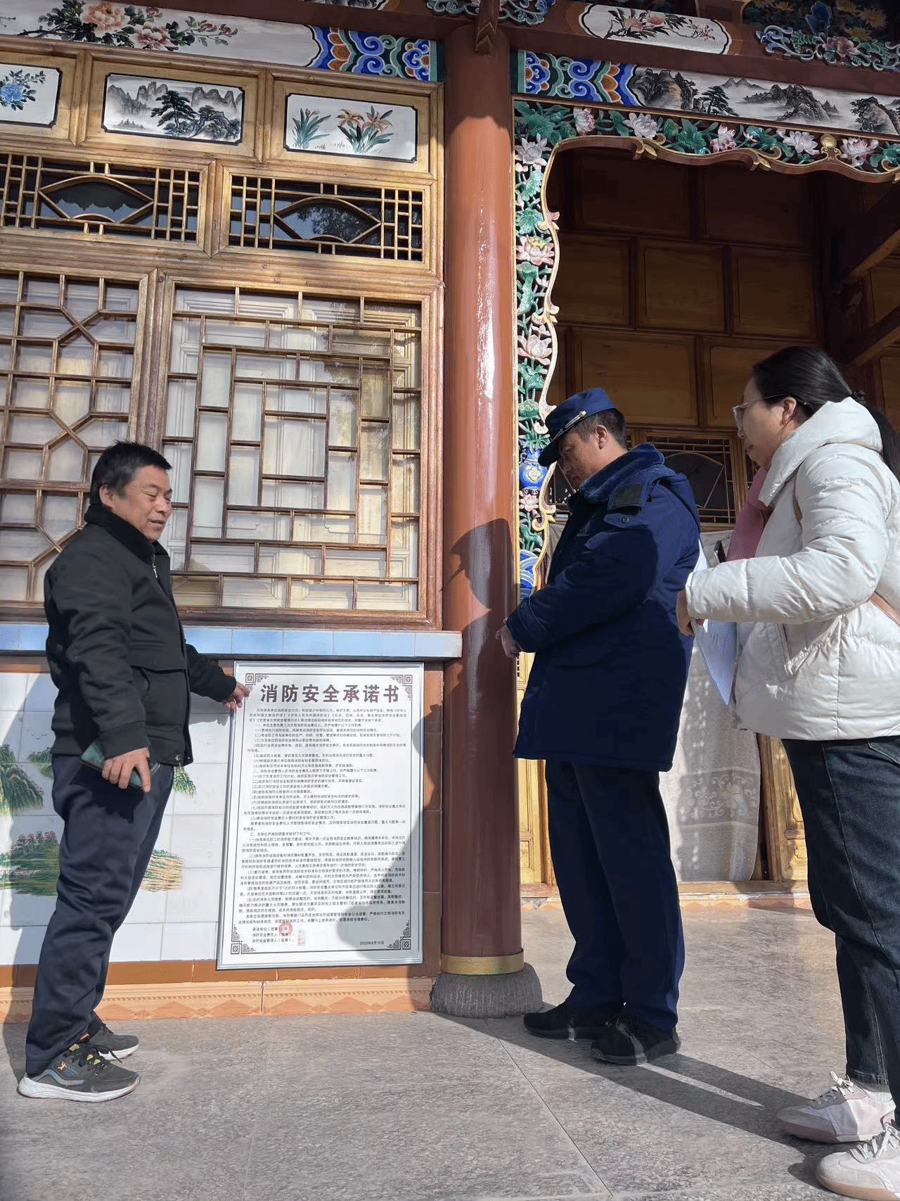 元旦春节前夕,正值文物安全风险高发期、易发期,各类火灾诱因增加,为切实做好元旦春节期间文物安全工作,严防文物安全事故发生,12月29日下午,县文旅局联合县消防救援大队、县应急管理局、县博物馆等部门对我县古建筑文物保护单位进行安全工作大检查。
