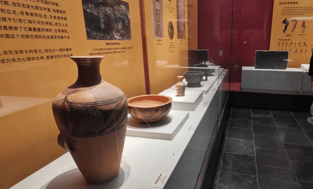 该展陈列共分为三个单元,依次为龙形初成 神性确立(新石器时期、夏、商、周、秦)、神龙变化 众生推崇(西汉、东汉、三国、南北朝、隋、唐)和皇家独享 龙的传人(宋、元、明、清、近现代)。龙作为中华文化的象征,自古以来在我们的历史长河中占据着重要的地位。回顾历史,龙文物的发展历程源远流长。从新石器时代的玉龙,到商周的青铜龙,再到明清的龙袍绣片,龙的形象随着时代的发展不断演变,见证了中华民族的文明进步。在历史的每一个时期,都留下了许多脍炙人口的龙传说和故事,它们丰富着我们的精神世界,激发着我们的民族自豪感。