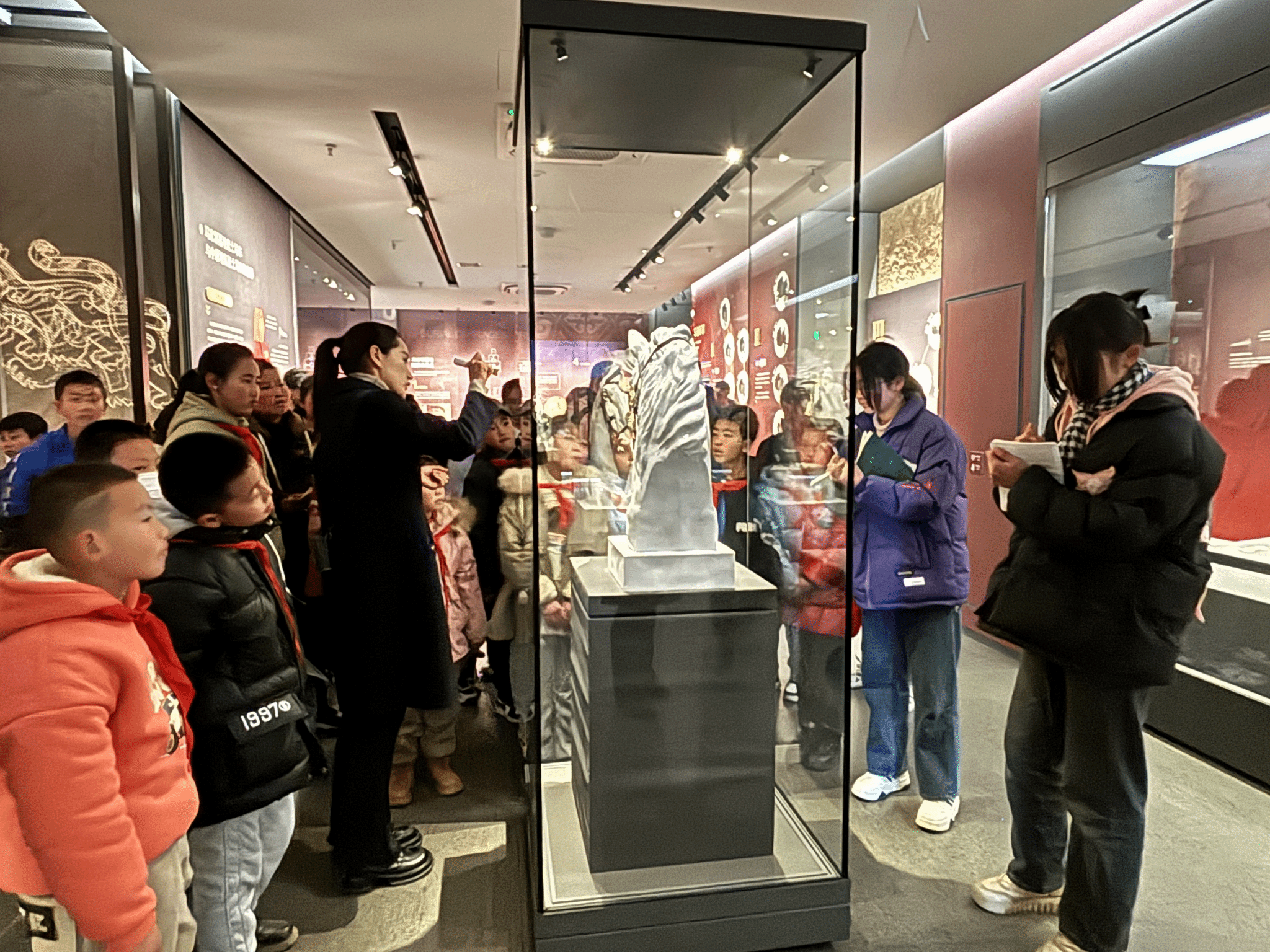 在各学校老师的组织下,张家川县博物馆讲解员组织同学们分批参观了县博物馆、马家塬车舆博物馆。走进博物馆,大家带着好奇的目光欣赏着展柜中的一件件文物,用心感受着馆藏文物的文化价值和家乡的发展变迁;在马家塬车舆博物馆,大家观赏着珍贵文物和战国豪车,学习历史知识,探索科学奥秘,增加知识储备。同学们通过与文物近距离的接触和对话,从历史文化中感悟智慧,从传统文化中汲取知识,深刻体会到中华优秀传统文化的魅力和历史文化的博大精深。