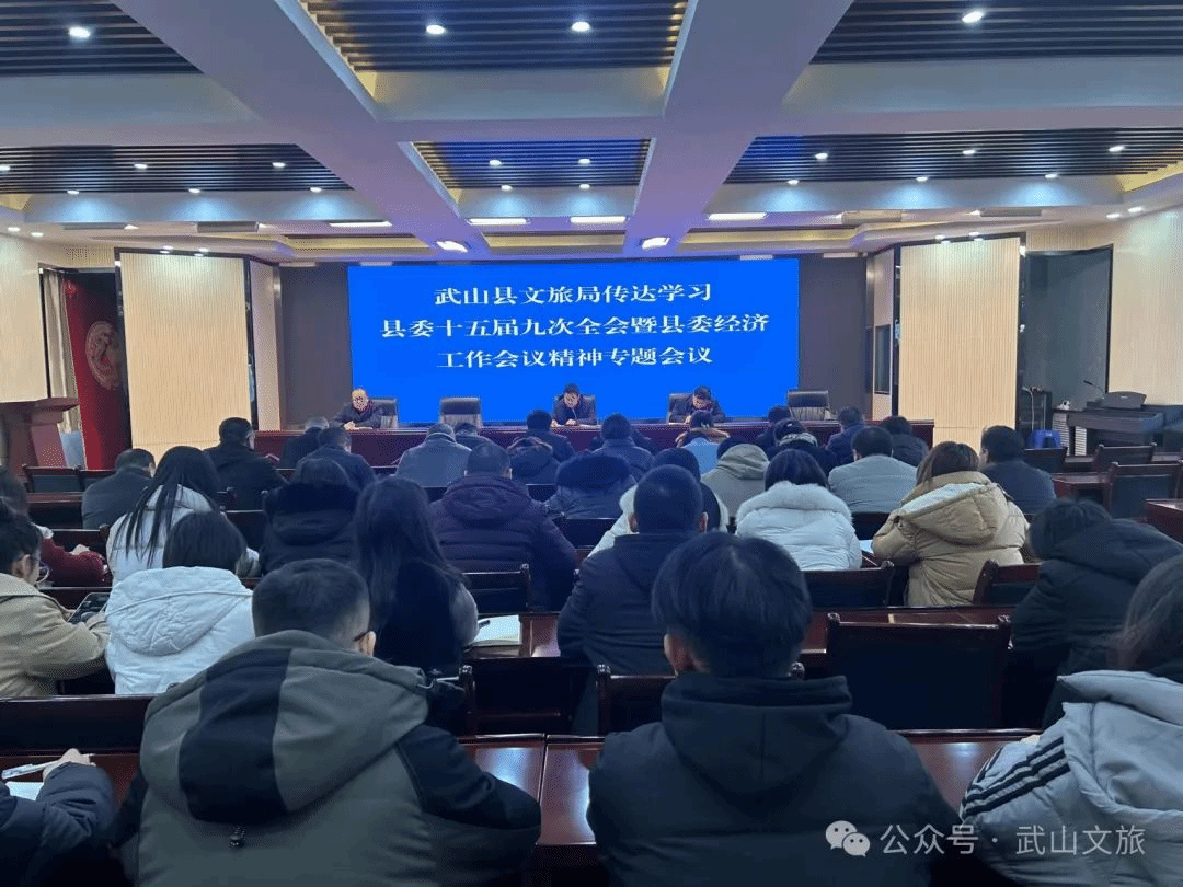 2024年1月17日下午,县文旅局召开传达学习武山县委十五届九次全会暨县委经济工作会议精神专题会议,会议由局党组书记、局长刘斌同志主持,局领导班子,各基层单位负责人以及局机关全体干部职工参加。