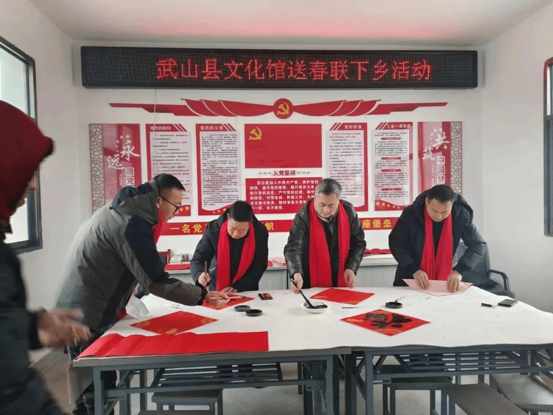 新春纳福送春联,挥毫泼墨送祝福。近日,武山县文化馆深入洛门镇富源社区、四门镇西川村、温泉镇何湾村等地,开展“享文化惠民 促和美乡村”武山县文化馆送春联下乡活动,营造浓郁的春节氛围,将节日的祝福与浓浓的年味送到广大群众家门口。