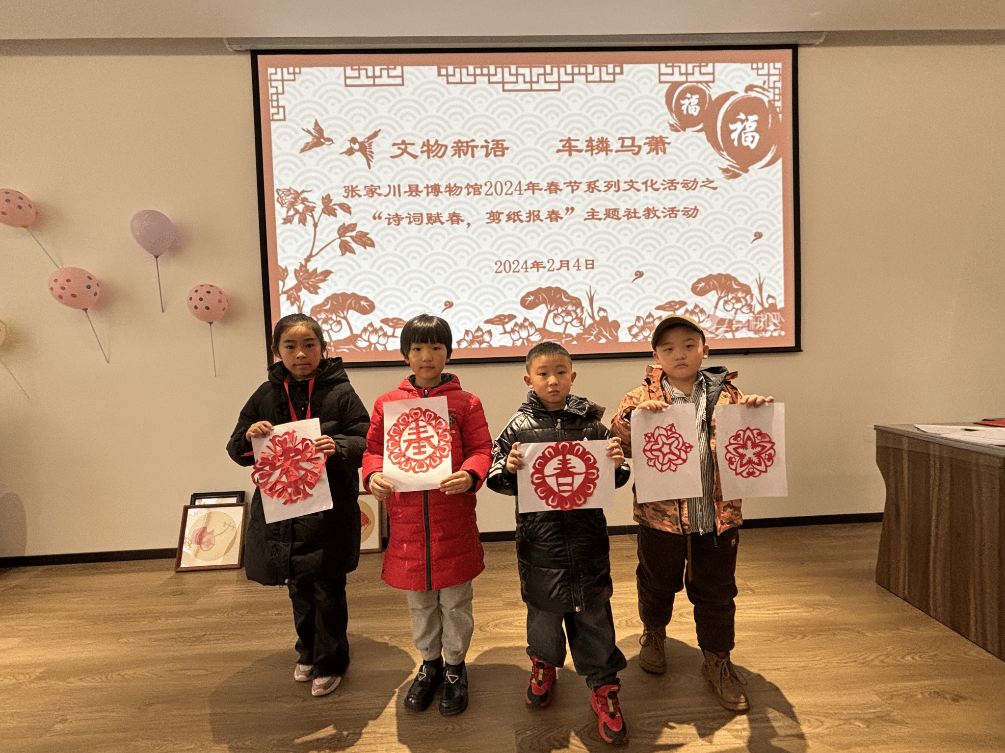 “今年春色早,应为剪刀催。”立春,反映着一年四季的更替轮回,剪纸是立春的重要活动之一。一张红纸,一把剪刀,剪出一份春节的喜悦,剪出一抹浓浓的年味。为弘扬中华优秀传统文化,营造文明健康、祥和快乐的节日氛围,2月4日,张家川县博物馆举办了以“诗词赋春,剪纸报春”为主题的社教活动。
