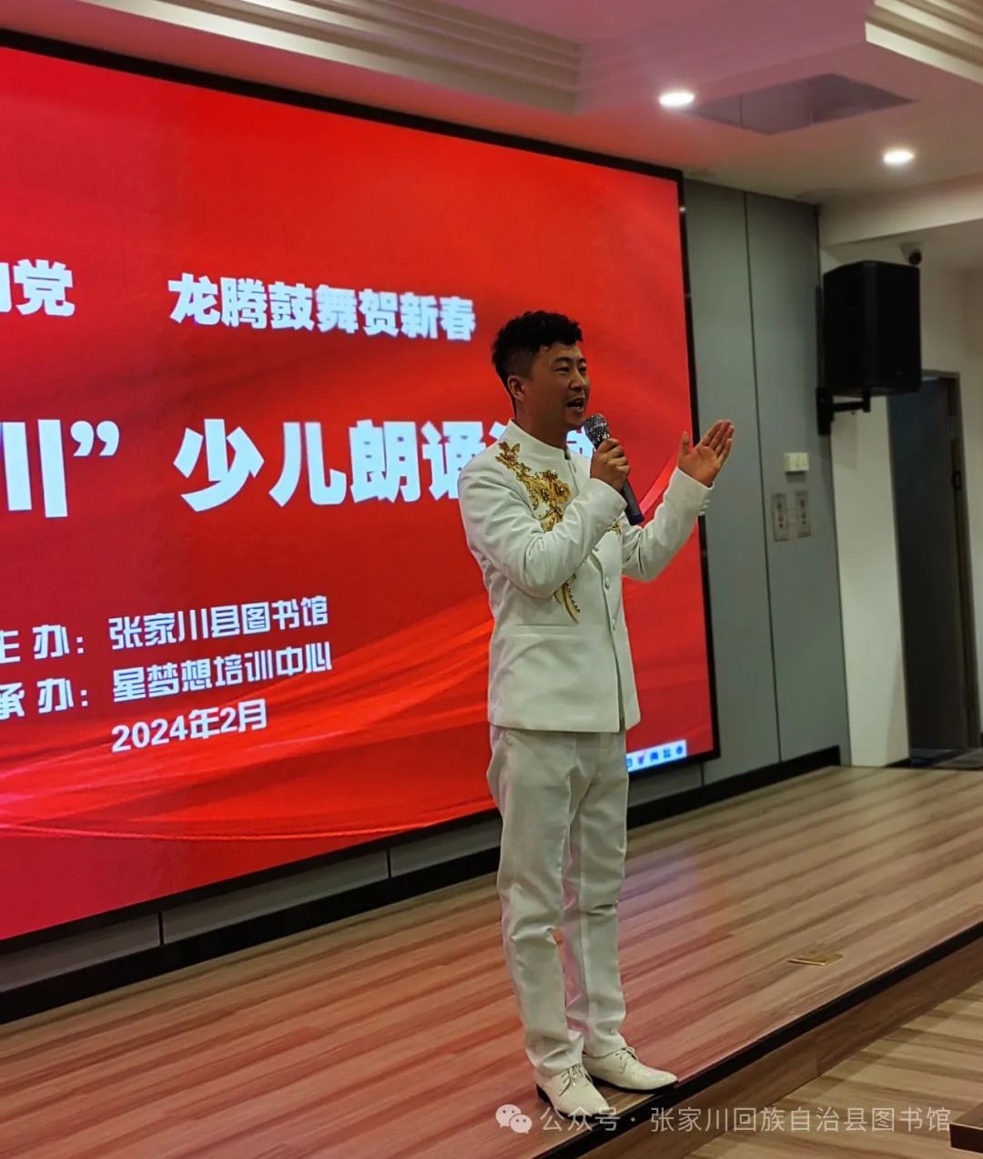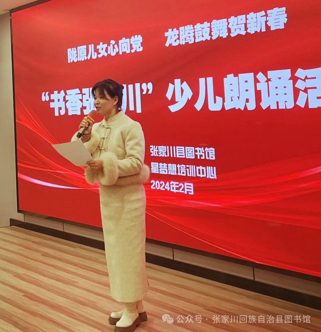 为活跃节日气氛,丰富青少年儿童假期生活,吸引更多的青少年儿童走进图书馆度过一个有意义的春节,更进一步推动“书香张家川”建设,2月3日下午,张家川县图书馆联合张家川县星梦想艺术培训中心,在图书馆多功能厅举办了以“陇原儿女心向党 龙腾鼓舞贺新春”为主题的“书香张家川”少年儿童朗诵活动。