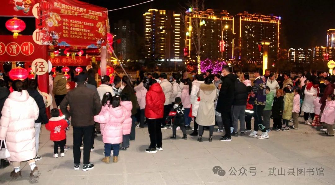 轰天锣鼓敲,岁岁闹元宵。值此元宵佳节之际,为弘扬中华优秀传统文化,丰富广大人民群众的精神文化生活,2月24日,由武山县文体广电和旅游局主办,武山县图书馆承办的2024年“祥龙迎新春 猜谜闹元宵”灯谜竞猜活动在武山县人民广场“龙”重举办,吸引了6000余名群众的广泛参与。