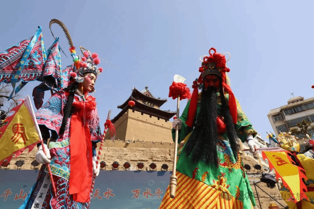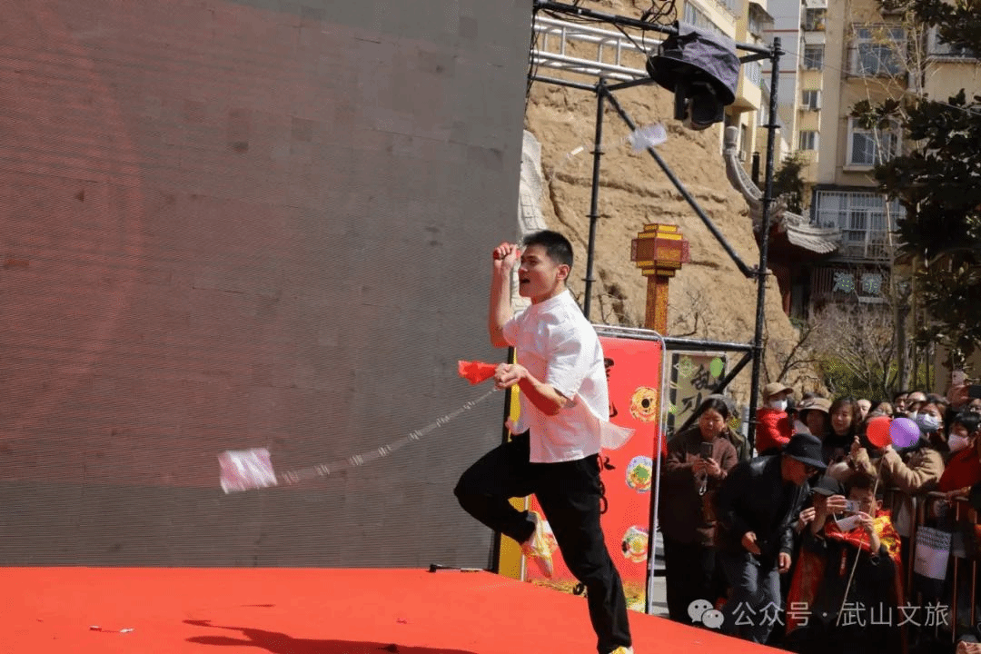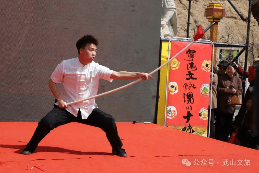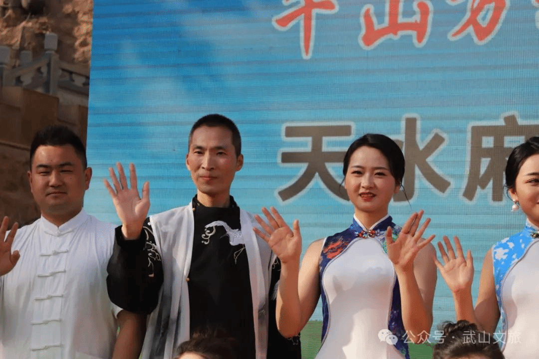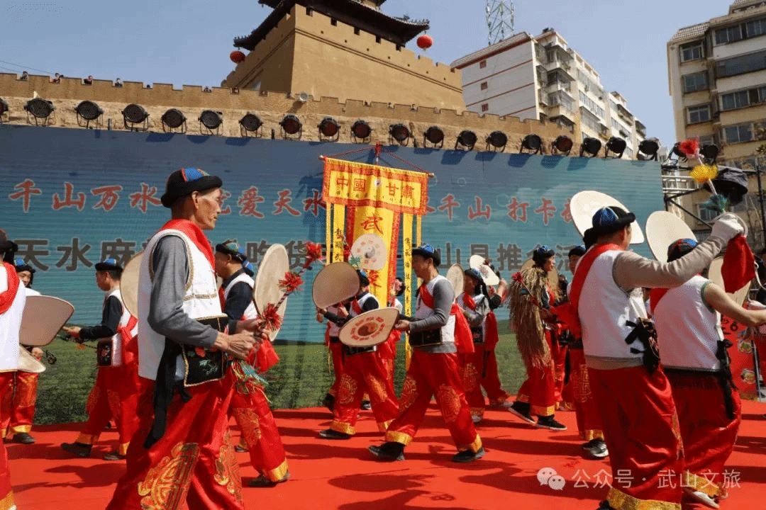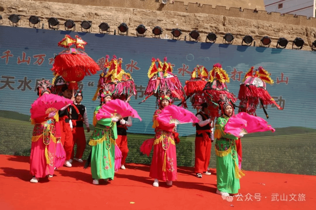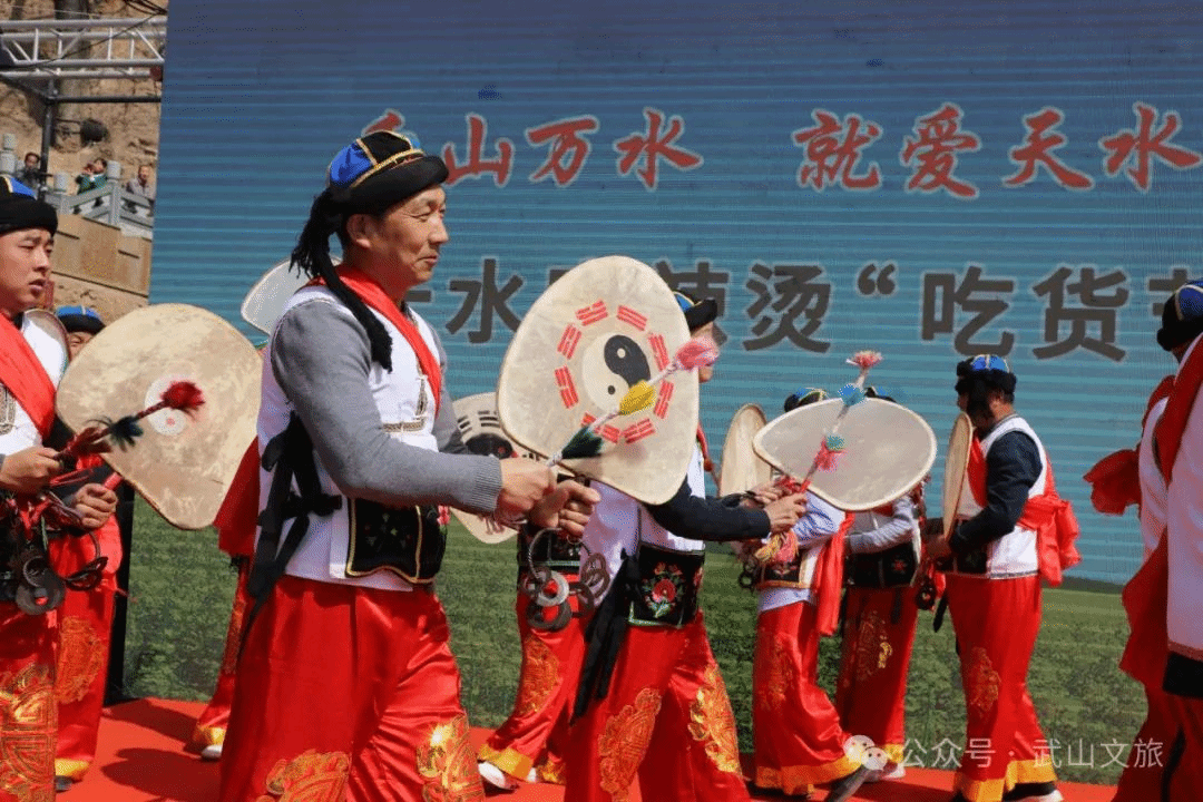 当天,还进行了具有地方文化特色的歌舞类、民俗类以及歌曲、茶艺展示等文艺演出节目。活动在以麻辣烫为题材创排的舞蹈《热辣滚烫》中拉开序幕,无论是推介油菜花海的歌伴舞《家乡的油菜花》、推介乡村旅游的舞蹈《上春山》,还是体现陇上玉器之乡特色的舞蹈《玉润武山》,抑或是以石窟文化、拉梢寺壁画为元素的舞蹈《渭川福音》,都为现场的游客带来了一场视觉盛宴。国家级非遗项目武山旋鼓舞、市级非遗项目武山高跷以及武山捣蒜罐在天水古城、伏羲庙广场的巡回展演更是将此次“吃货节”推向了高潮。