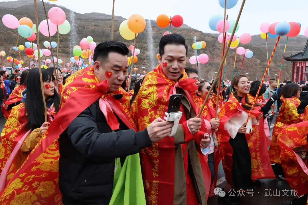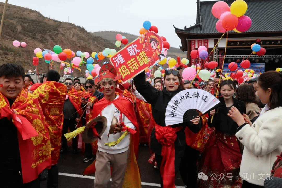 3月23日,“览世界第一摩崖佛 捣武山千人蒜罐舞”2024年十有武山春游文化活动非遗展演启动仪式在水帘洞景区成功举行。当天水帘洞景区迎来了春游活动以来的第一波人流高峰、人气高潮、“流量”巅峰,数千名来自各地的朋友踊跃加入捣蒜罐行列,在水帘洞景区形成欢快的人流群,涌动的气球群,狂欢的蒜罐舞潮,打卡宣传的新浪潮。从游客中心门口至拉梢寺大佛前到处洋溢着青春的激情,弥漫着欢乐的气氛,呈现出喜庆祥和的景象,吸引网红、游客前来览世界第一摩崖佛,捣武山千人蒜罐舞。