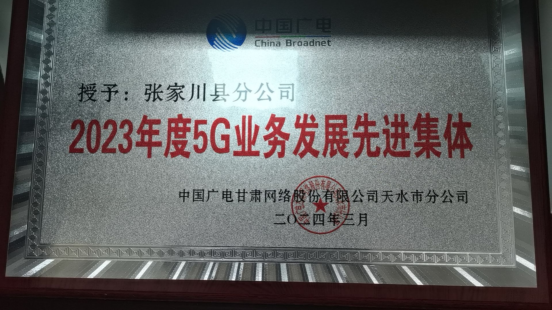 深耕现有网络资源,高质量完成项目建设。构建形成“规模化、集约化、专业化”的全县统一运营体制机制,着力提升张家川县有线电视网络在全市广电行业的竞争力、传播力和影响力;更好服务智慧城市、智慧家庭等建设,更好地满足人民群众文化娱乐和信息服务需求。2023年积极申报张家川县民族地区有线高清交互数字电视机顶盒推广普及项目,广电网络张家川县分公司在县文旅局指导下,深入全县255个行政村实地调研、现场勘验,召开党支部会议8次,收集整理各类意见建议110条,反复磋商实施方案80余次。进一步提高思想认识,夯实责任,把项目实施作为党和政府为民办实事办好事的德政工程、惠民工程,高起点谋划、高标准定位、高质量完成安装任务5000户。项目的建设更好地满足了全县人民群众文化娱乐和信息服务需求,让老年人在信息化发展中有更多获得感、幸福感、安全感,为加快张家川县广电5G建设提供了更多可能。2024年3月被中国广电甘肃网络股份有限公司天水市分公司授予“2023年度5G业务发展先进集体”荣誉。