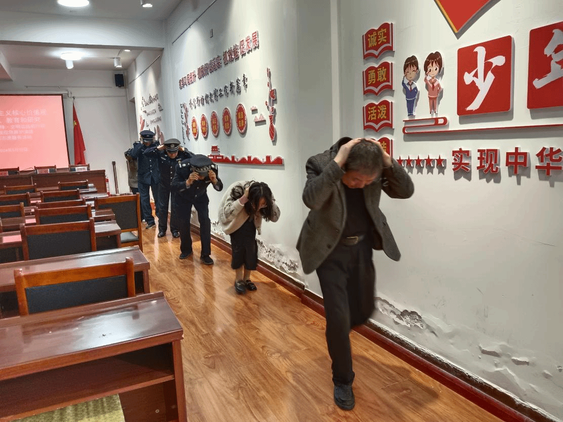 防震演练 随着指挥人员一声令下,大家双手抱头,蹲在桌子下面,按照预案计划的逃生路线安全、快速地撤离到了安全地带,整个演练用时1分03秒,达到了预期的效果。