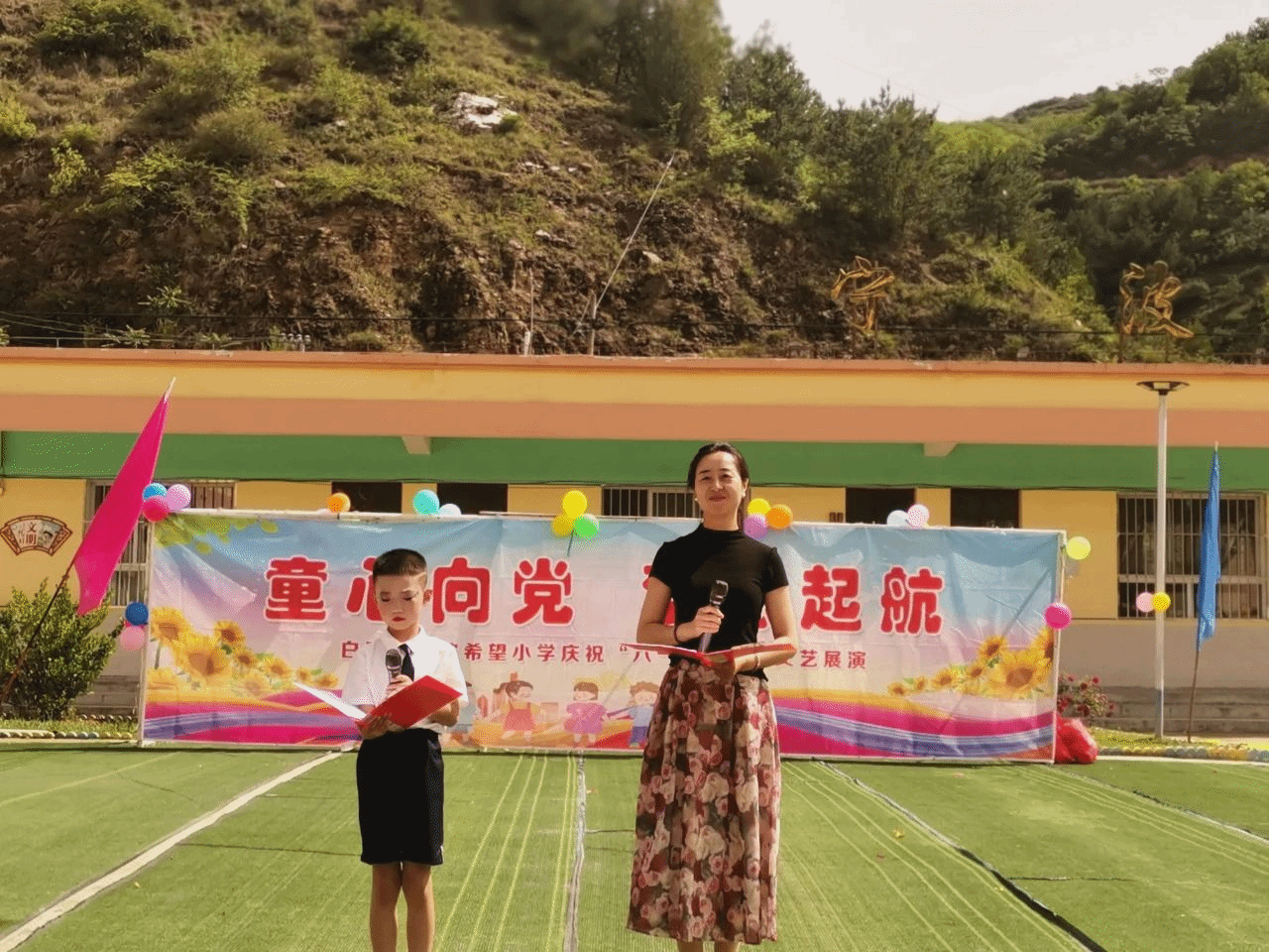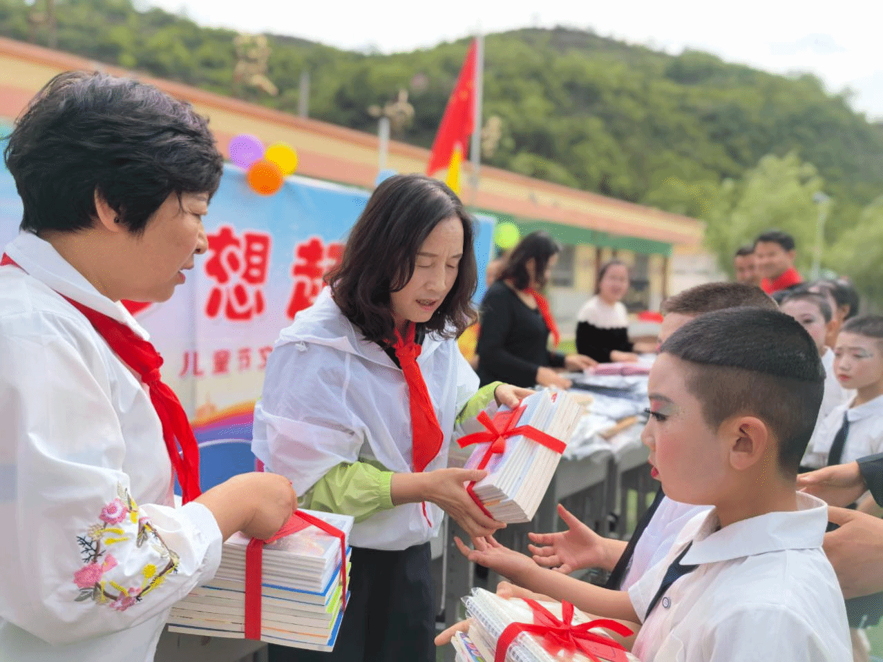 孩子们身着节日的盛装,表演了丰富精彩的节目,充分展现出了新时代乡村少年儿童的精神风貌。图书馆工作人员和孩子们一起朗诵了《今天,我们是初升的太阳》《献给儿童节》《少年中国梦》等诗歌,同时给全校的每位学生赠送了图书和学习用品,表达了对孩子们节日的祝福与关爱。