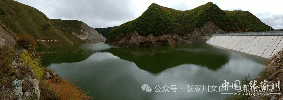碧波荡漾的湖泊映衬着蓝天、山峦