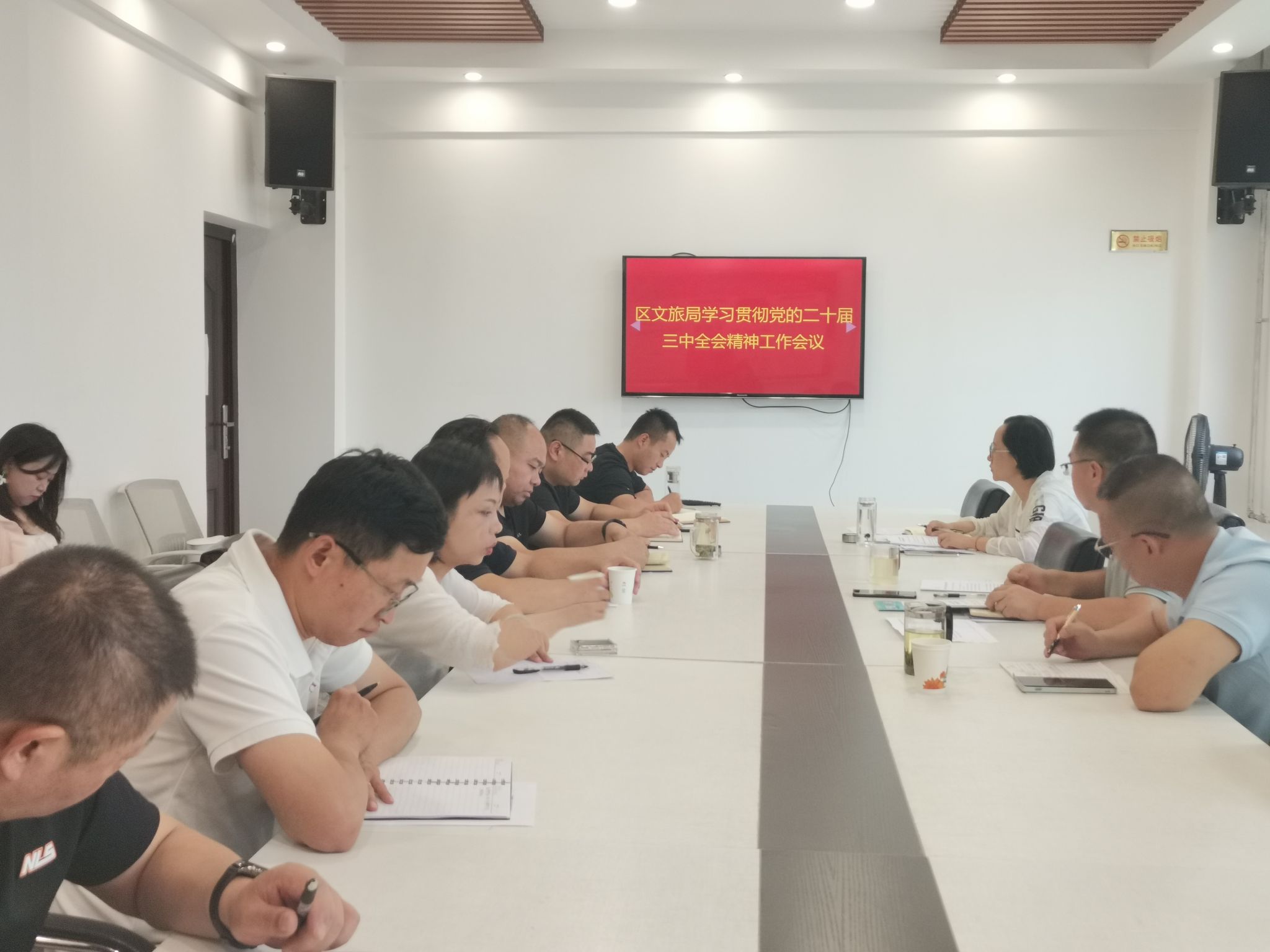 7月29日上午,秦州区文旅局召开党的二十届三中全会精神专题学习会议,局长康小强主持会议,领导班子成员、各股室、局属各单位负责人及所有科级干部参加会议。
