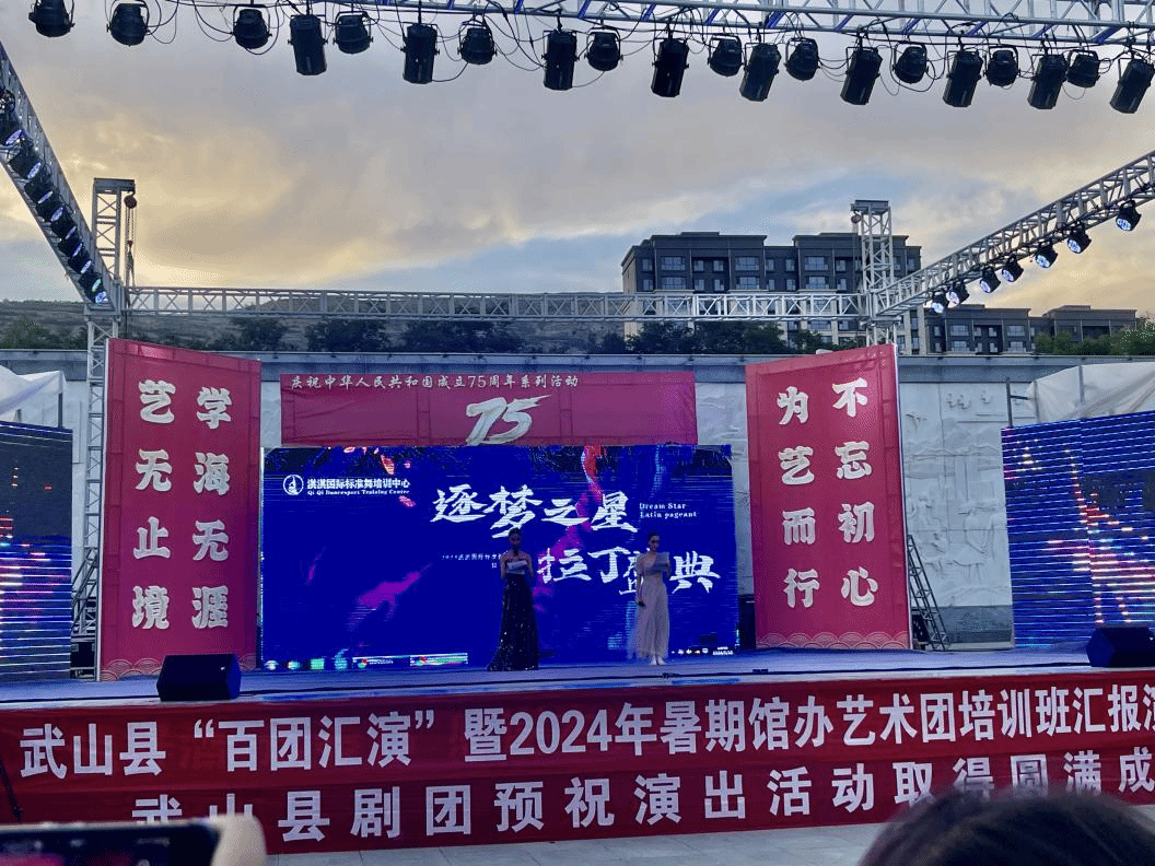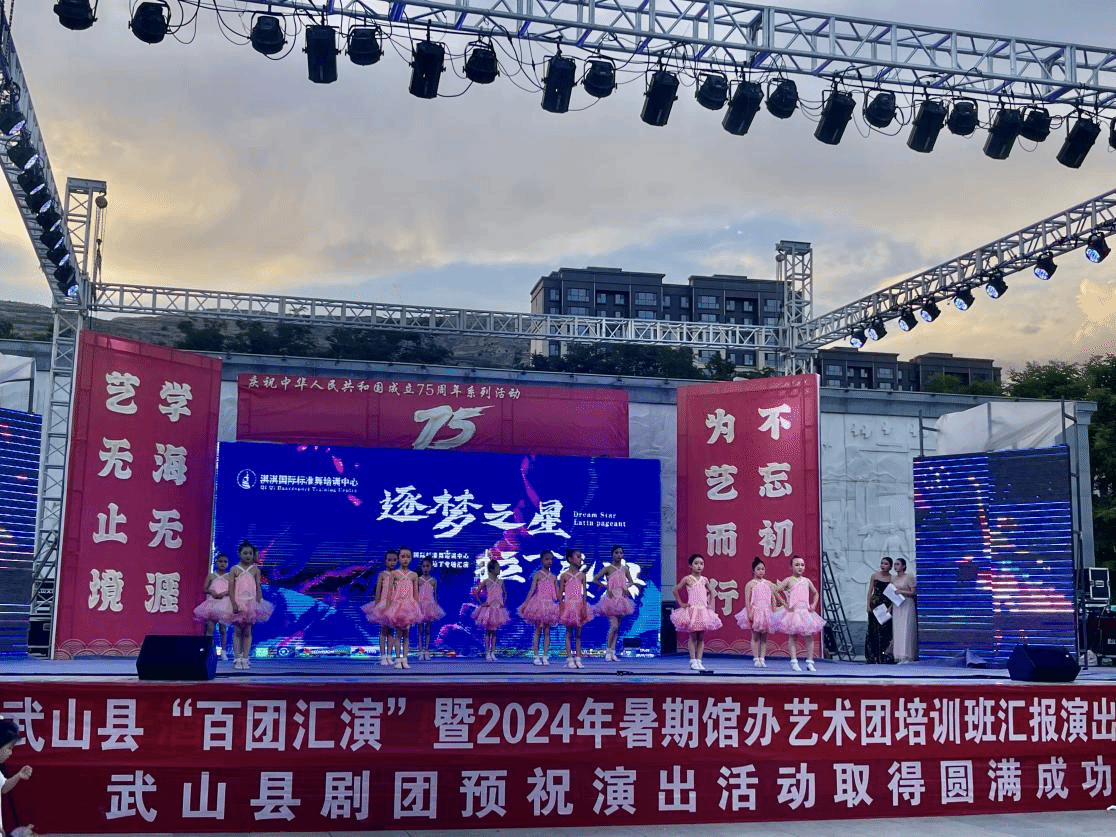为隆重庆祝中华人民共和国成立75周年,充分展现我县群众文艺发展成果,加强基层群众文艺人才队伍建设,丰富群众精神文化生活,7月27日至8月3日,由中共武山县委宣传部、武山县文体广电和旅游局主办,县渭川文旅集团、县文化馆及馆办艺术团承办的武山县优秀群众文艺团队“百团汇演”文化惠民演出活动在武山县人民广场火热上演。