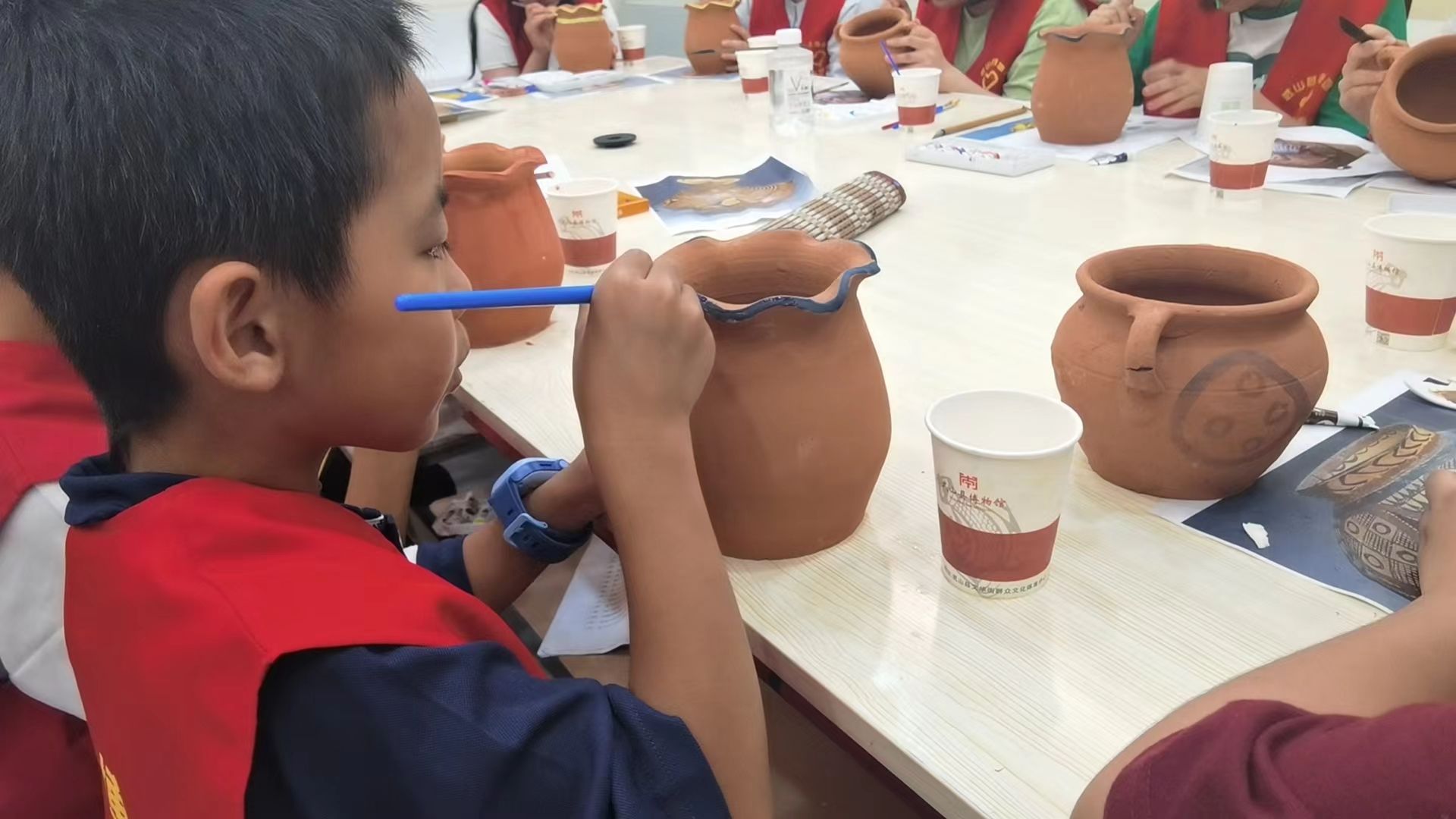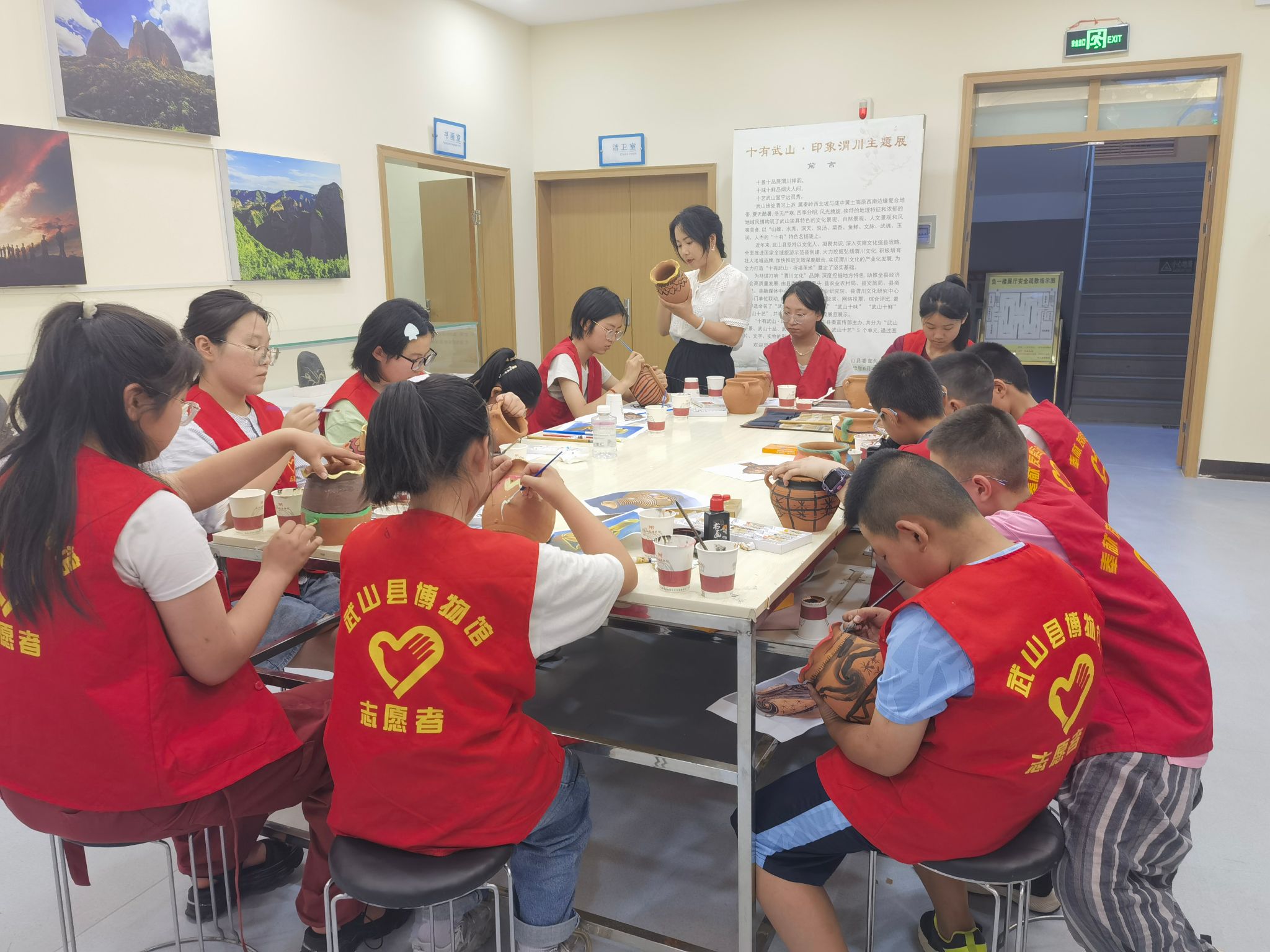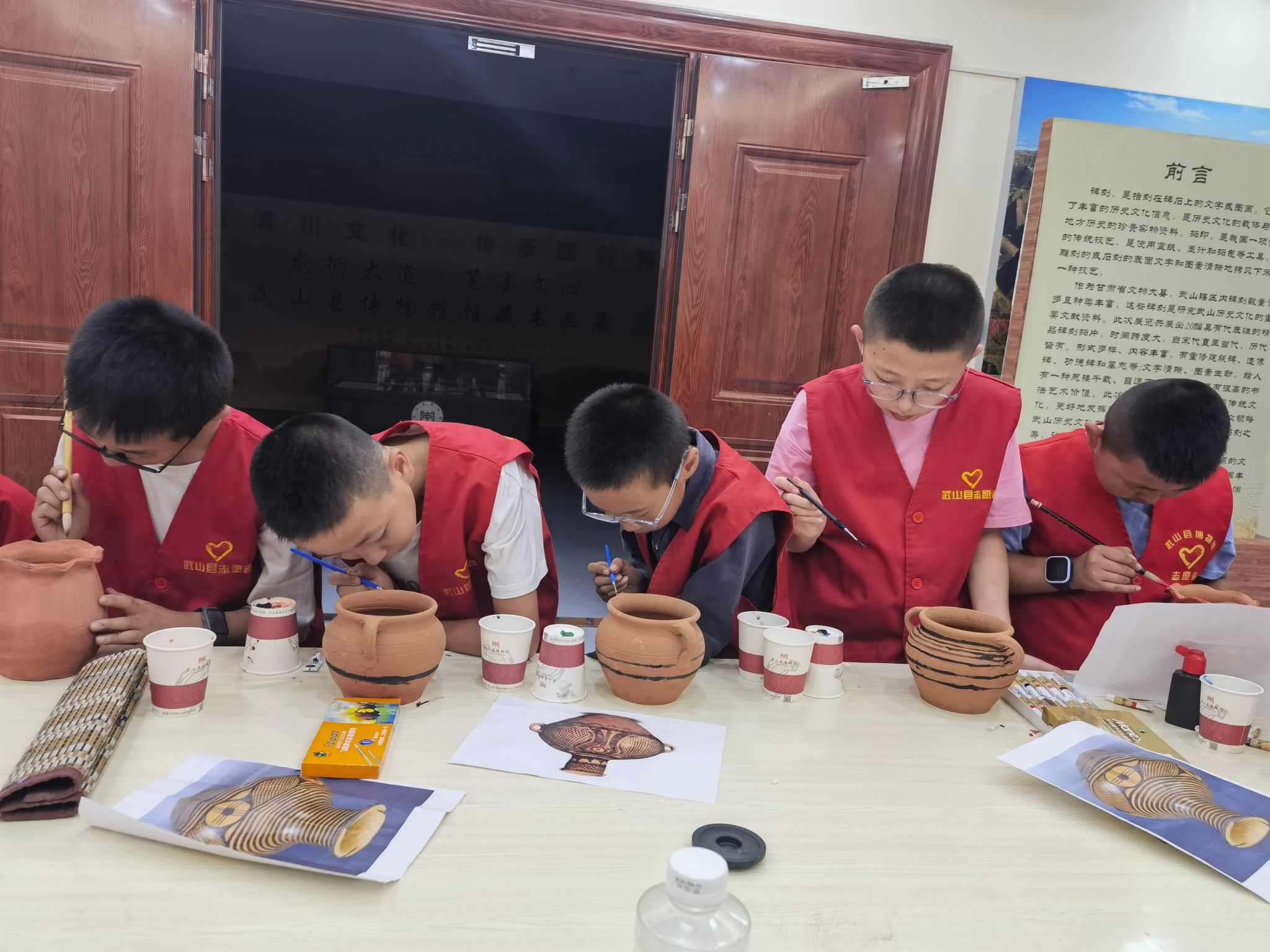 为弘扬“奉献、友爱、互助、进步”的志愿者精神,丰富青少年和儿童的暑期精神文化生活,让他们暑有所学、暑有所乐、暑有所托,传承红色基因,弘扬中华优秀传统文化。按照《天水市新时代文明实践中心办公室关于组织开展“我在新时代文明实践中心过暑假”主题活动的通知》要求,7月31日,武山县博物馆组织新招募的暑期志愿者开展了“淘里淘气·清凉一夏——彩陶纹饰绘制”主题社教活动。