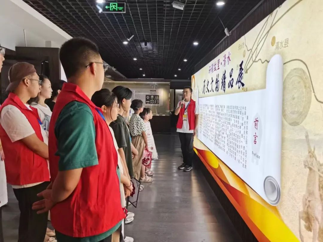 在志愿者的引导和讲解下,孩子们参观博物馆展厅馆藏文物,在触手可及的文物前丰富心灵,了解清水历史,感受清水历史文化的独特魅力。