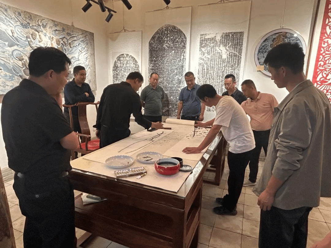 交流组一行先后参观了办公室,非遗展览室,舞蹈厅,业务综合室等场所,详细介绍了我馆的场馆建设、群文活动开展、文化辅导培训、非遗宣传保护等情况。三馆负责人就场馆建设和文艺培训,非遗保护等方面进行了深入交流,希望能以此次馆际交流为契机,进一步加强三地文化馆交流,建立更加紧密的联系,共同实现群文工作新的更大跨越。随后,开展了书画交流活动,各位书画老师挥毫泼墨,或书或画,即兴创作,相互探讨,活动现场充满了浓厚的文化氛围。