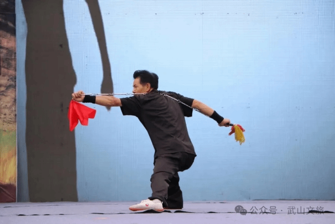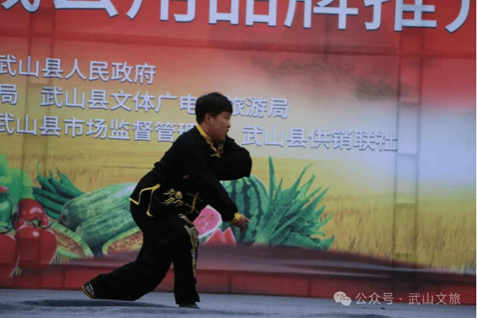 开场流星扫场刀,武术展演由拳师周录应的流星锤拉开序幕,老中青武术健儿相结合,展示武山全国武术之乡的武术魅力。展演人员个个精神抖擞,人人各显其能,刀如猛虎剑如龙,双手剑尽显奇妙,翻子拳、少林拳、八极拳精彩纷呈,九节鞭如蛟龙出海,八卦钺似怪蟒翻身,棍打一大片,枪扎一条线,鞭杆变幻莫测,大刀势威力猛,展示了武山县各乡镇的武术特色和水平,体现了武山武术之乡的深厚武术文化。