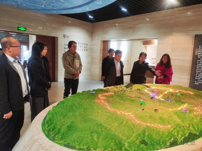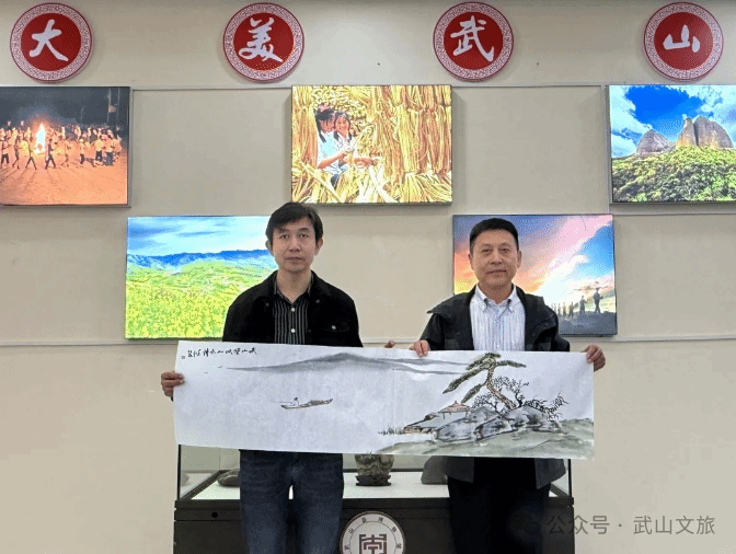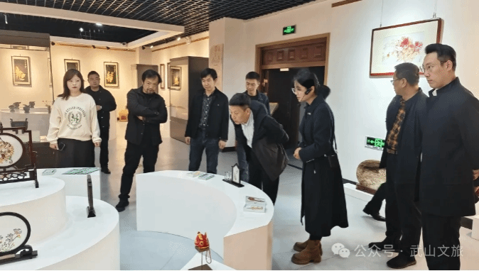 在博物馆,天津宝坻区文化和旅游局一行人参观武山馆藏文物、“沧桑巨变•时代印象”武山记忆主题展、武山文创产品展,了解武山深厚文化底蕴和非遗文创。同时,来自宝坻区的书画家为武山县赠送《武山宝坻山水情》书画。