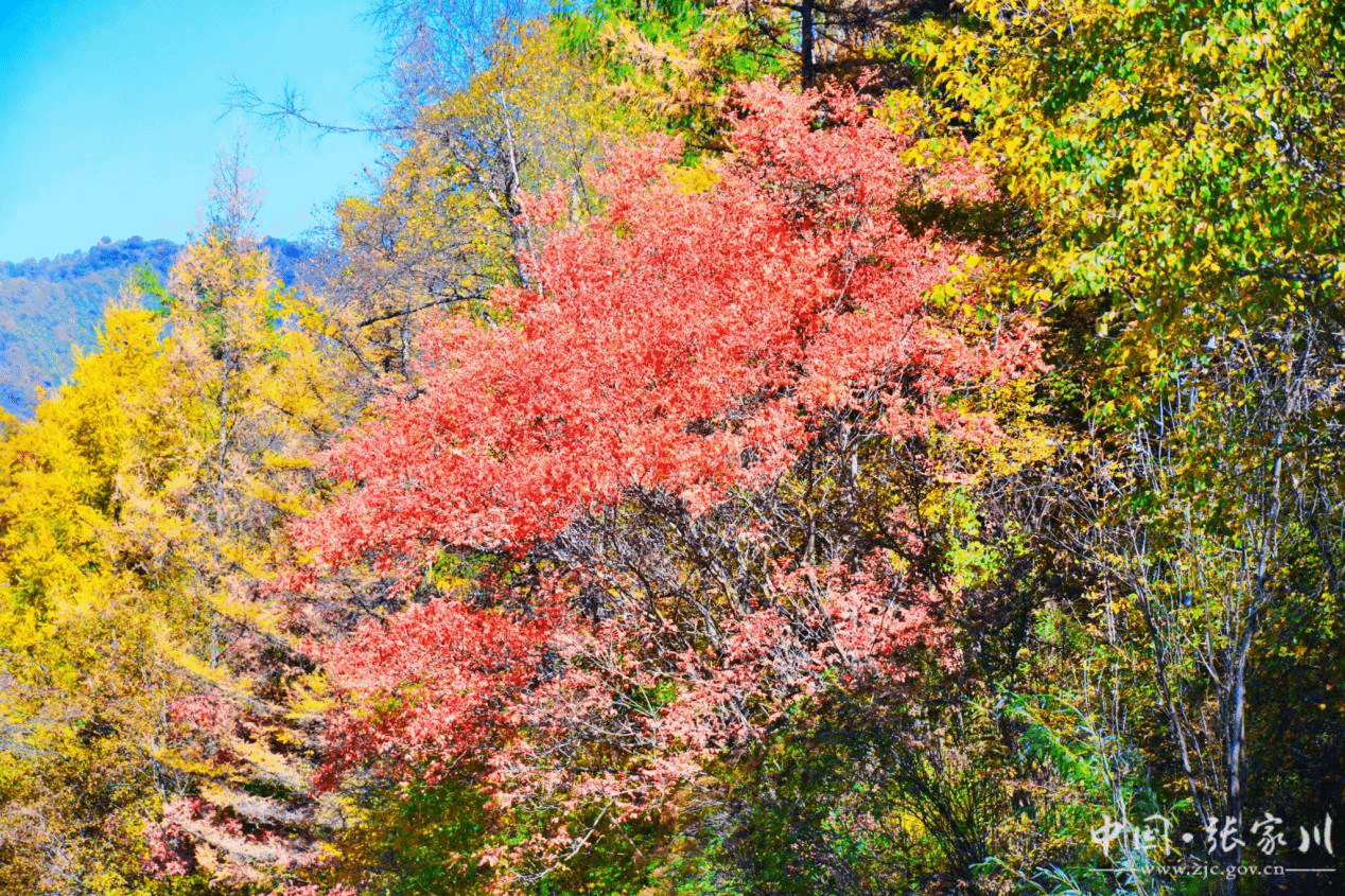 正值深秋,秦家塬景区草木纷纷“换装”,林中枫红、金黄、墨绿等各种颜色交织,展现出一幅色彩斑斓的诗意画卷。
