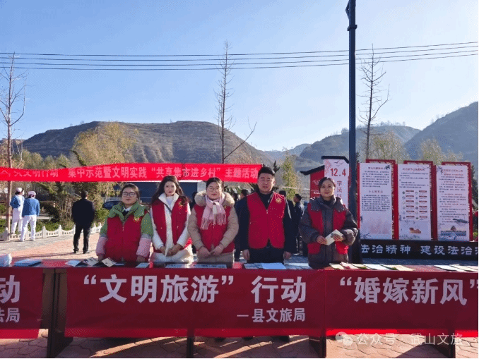 在水帘洞景区和洛门镇蓼阳村,志愿者们身着统一的志愿服装,手持宣传折页,穿梭于游客之间。他们通过现场讲解、政策解读、答疑解惑和发放宣传折页等方式,向游客们详细介绍了“十大文明行动”的具体内容,包括不乱扔垃圾、不随地吐痰、不在景区内乱涂乱画、遵守交通规则、礼貌交流互动等文明行为准则,将文明旅游的理念传递给更多的人。志愿者们还耐心解答游客们的疑惑,用通俗易懂的语言解读相关政策,引导游客在欣赏美景的同时,自觉维护旅游秩序,保护生态环境。同时,在活动现场,县文旅局还组织了一场精彩的文艺演出,演出节目丰富多彩。