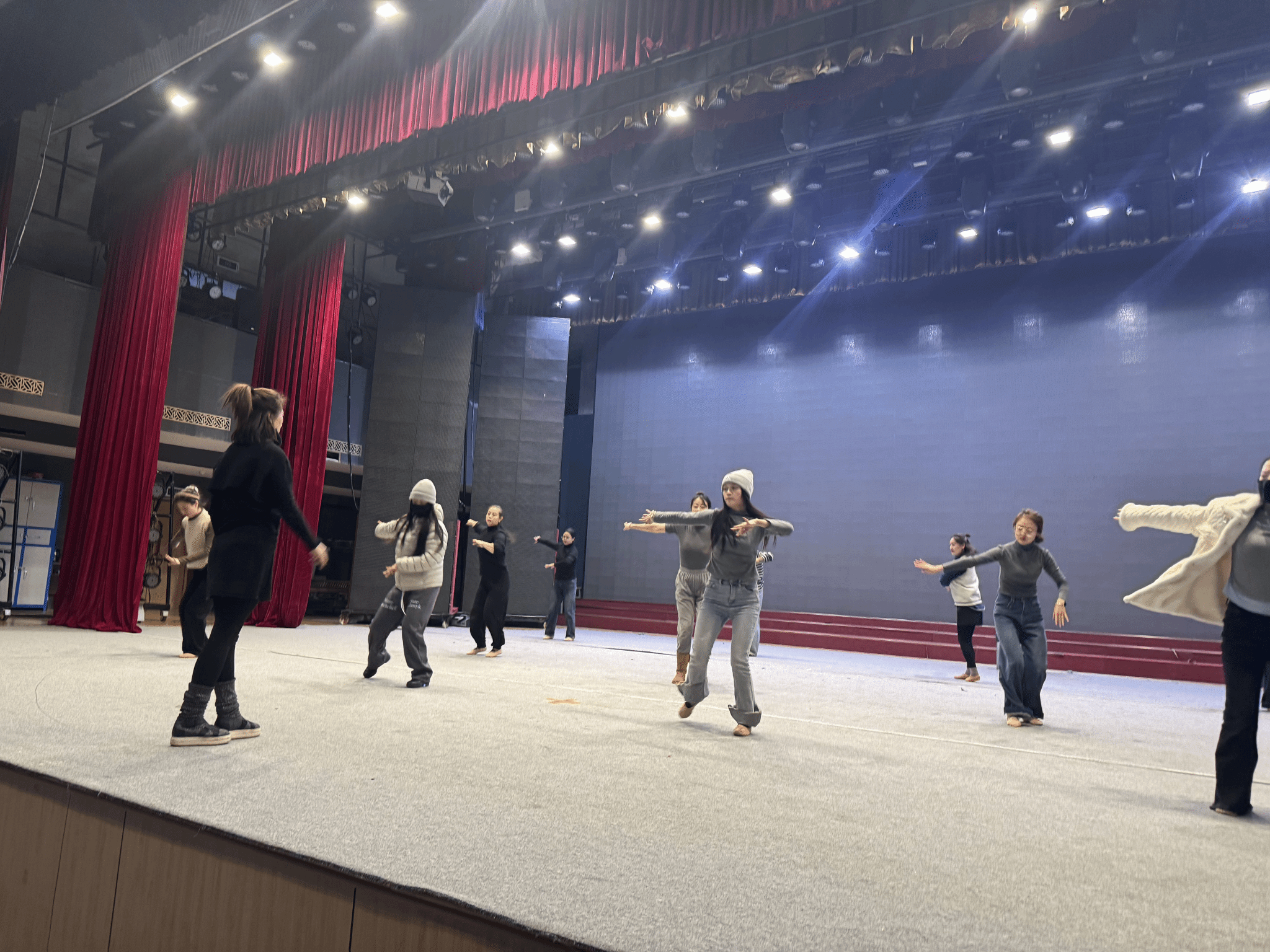 春节临近,张家川县2025年春节联欢晚会上演的时间也越来越近。10日早晨,张家川县影视剧院热闹纷呈,20多名演员齐聚舞台,进行着一次又一次的全流程排练。所有参演人员在音乐旋律中翩翩起舞,她们同一个动作一遍又一遍的重复练习,脸上洋溢着幸福灿烂的笑容。