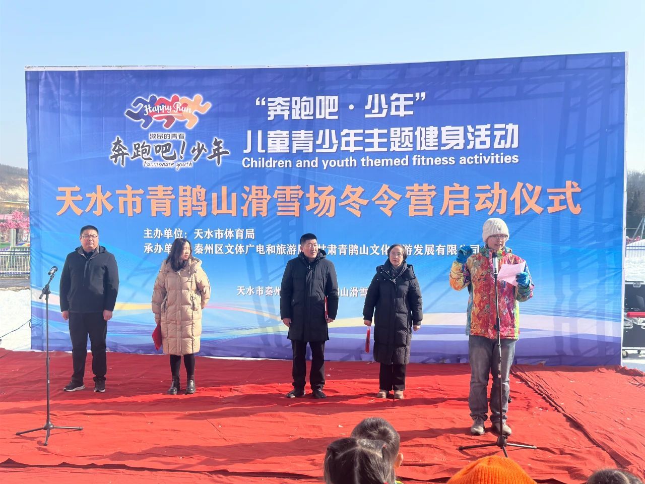 1月18日上午,“奔跑吧·少年”儿童青少年主题健身活动——天水市青鹃山滑雪场冬令营启动仪式在秦州区孙集村青鹃山滑雪场正式开启。天水市体育局、秦州区文旅局相关领导及工作人员、领队、参训选手及广大冰雪运动爱好者约150人参加了此次活动。