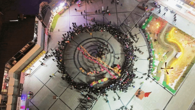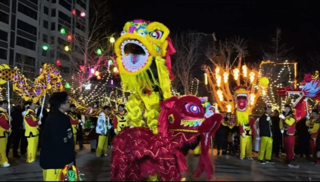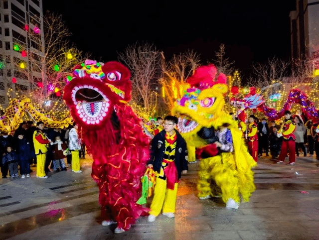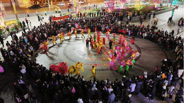 夜幕降临,华灯初上,宁远广场率先拉开了社火展演的序幕。铿锵有力的锣鼓声响起,舞龙舞狮队伍登场表演。巨龙时而蜿蜒盘旋,时而腾跃而起,活灵活现。舞狮则以其灵动的姿态和精湛的技艺,赢得阵阵喝彩,尤其是一群“小狮子”憨态可掬,灵动俏皮,童稚的表情和诙谐的动作引得观众掌声阵阵,纷纷拿出手机拍摄。
