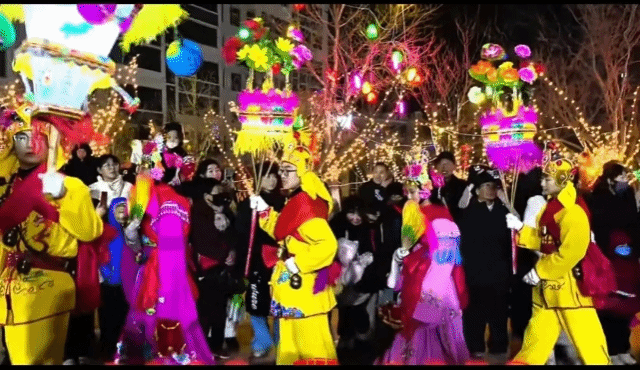 除了舞龙舞狮,传统的划旱船、跑纸马、唱秧歌等节目也纷纷亮相。旱船在“波浪”中摇曳前行,“姑娘”身姿婀娜,与艄公配合默契,演绎着水乡风情;秧歌队身着大红大绿的传统服饰,用欢快的唱腔、热情的舞姿,鲜艳多彩的高烨灯笼展现了传统文化的魅力,表现出了劳动人民对美好生活的热爱与向往。社火表演不仅丰富了群众的春节文化生活,营造了欢乐祥和的节日氛围,同时也增进了全村乡民及邻村间的感情。