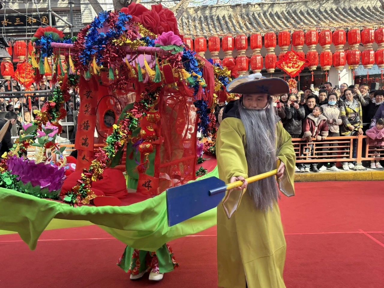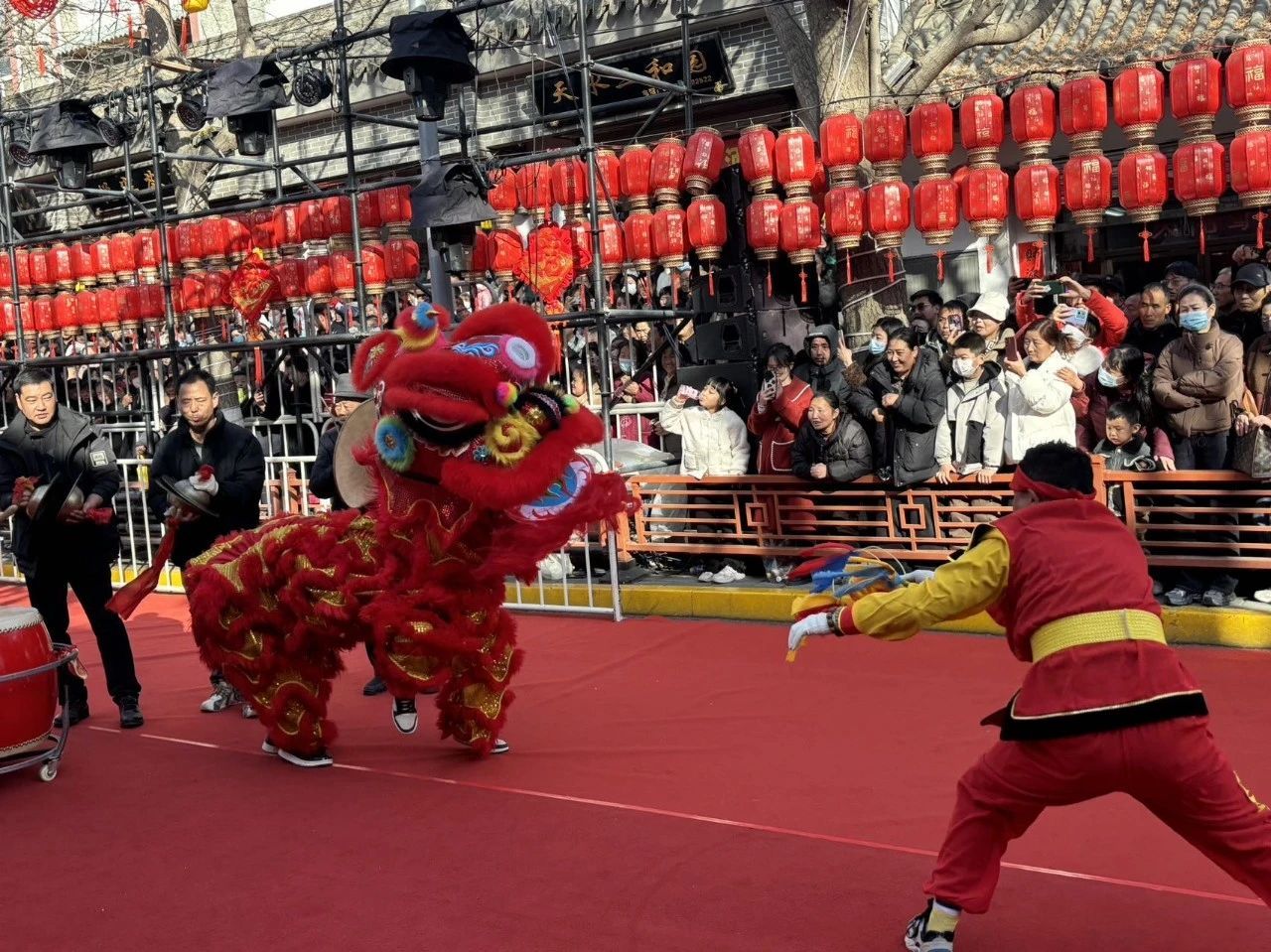 现场游客如潮,大家纷纷拿出手机拍照录像,将这精彩瞬间定格。孩子们兴奋地穿梭在人群中,被热闹的氛围感染,欢呼雀跃。外地游客更是对这些特色民俗赞不绝口,直呼感受到了不一样的年味。