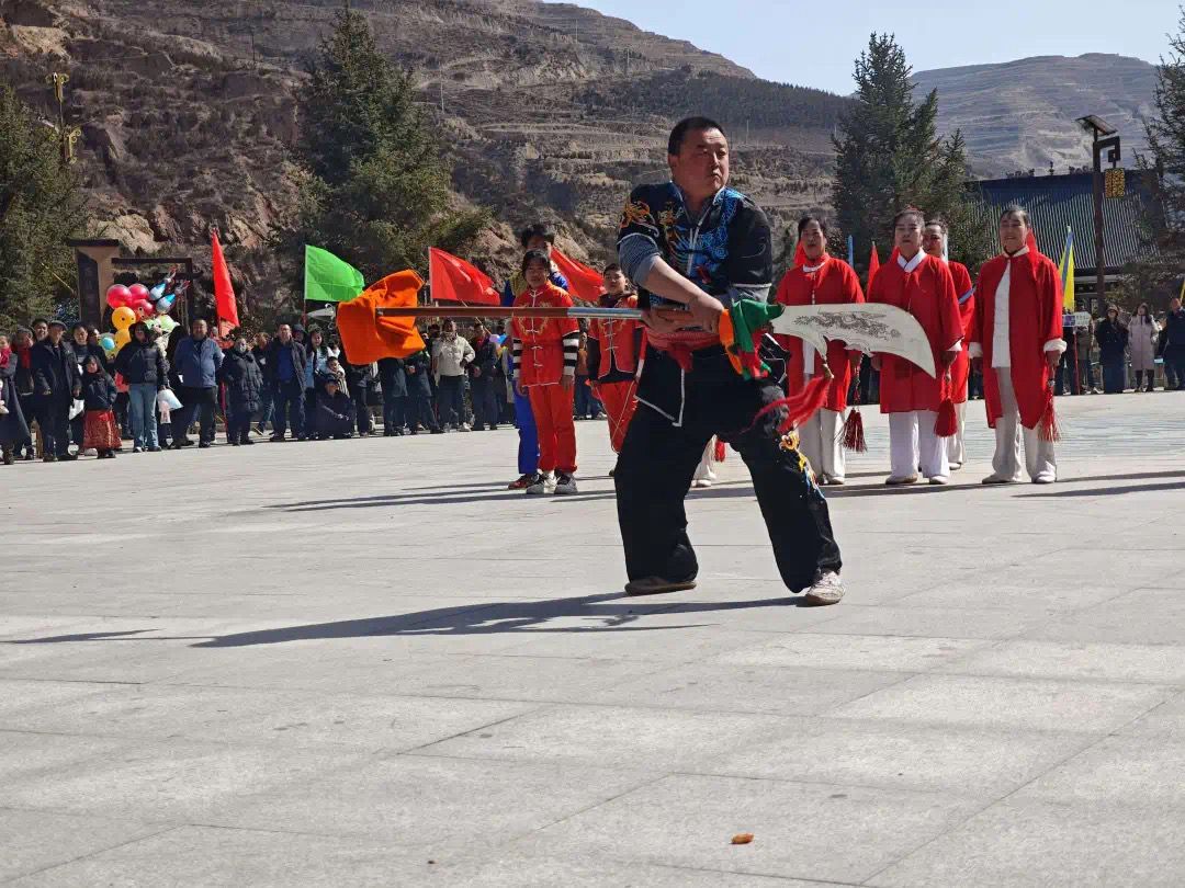 2月15日,武山摩崖石窟文化旅游区龙腾狮舞,鼓乐喧天,来自鸳鸯镇、马力镇、桦林镇、高楼镇的非遗展演,让旅游区顿时沸腾起来,摩肩接踵的游人,精彩纷呈的表演,车辆辐辏,热闹喧喧,一派春意盎然、文旅骎兴的景象。