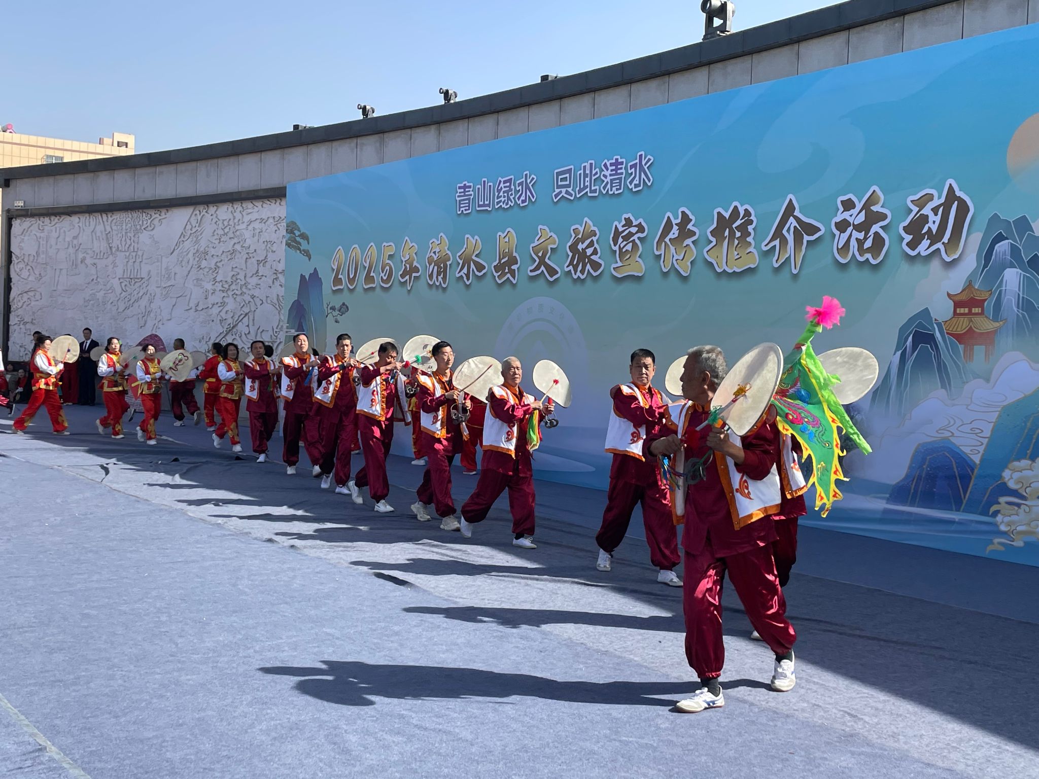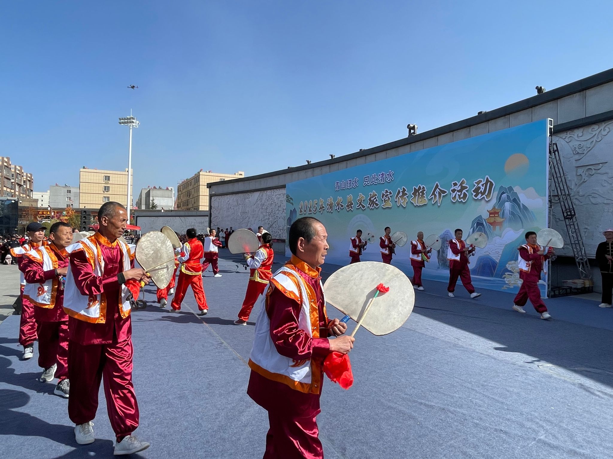 3月23日,国家级非遗武山旋鼓舞在清水县轩辕广场展演,为“青山绿水 只此清水”2025年清水县文旅宣传推介增添了亮色,展示了武山旋鼓舞金字品牌的神韵。这次旋鼓舞展演受清水县文旅局邀请,由武山县文旅局组织,武山县渭川旋鼓队演出,活动圆满成功,武山旋鼓舞的独特的魅力深深地留在了清水人民心中。
