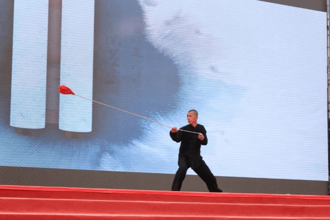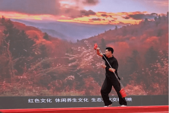 参加此次宣传推介武术展演的有多次参加全国武术之乡武术套路比赛摘金夺银的拳师唐淑媛、罗顺平、令发、韩晖及周斌、周亿琴等,还有著名拳师陈新录、年元换、谢海彦、马栋梁及全国武术之乡武术后备人才培训基地的少年精英,他们出场就是王炸,腾挪闪转,拳脚生风,尽显武山武术之乡魅力。