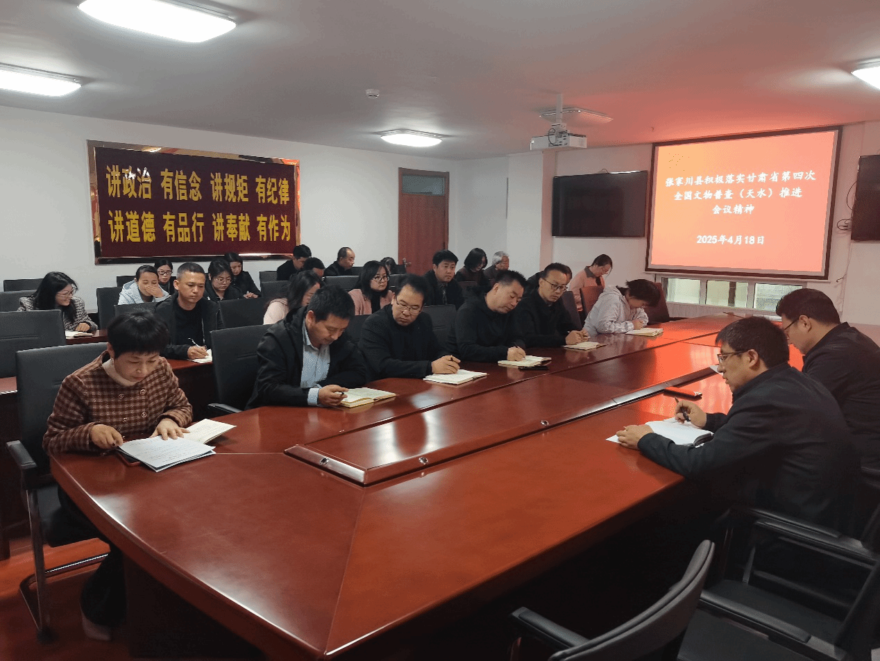 4月18日,张家川县第四次全国文物普查领导小组办公室召开专题会议,传达落实省第四次全国文物普查天水推进会精神,就整改省普查办反馈问题及下阶段工作进行部署。县文体广电和旅游局分管负责人主持会议,全体普查队员及相关业务负责人参会。