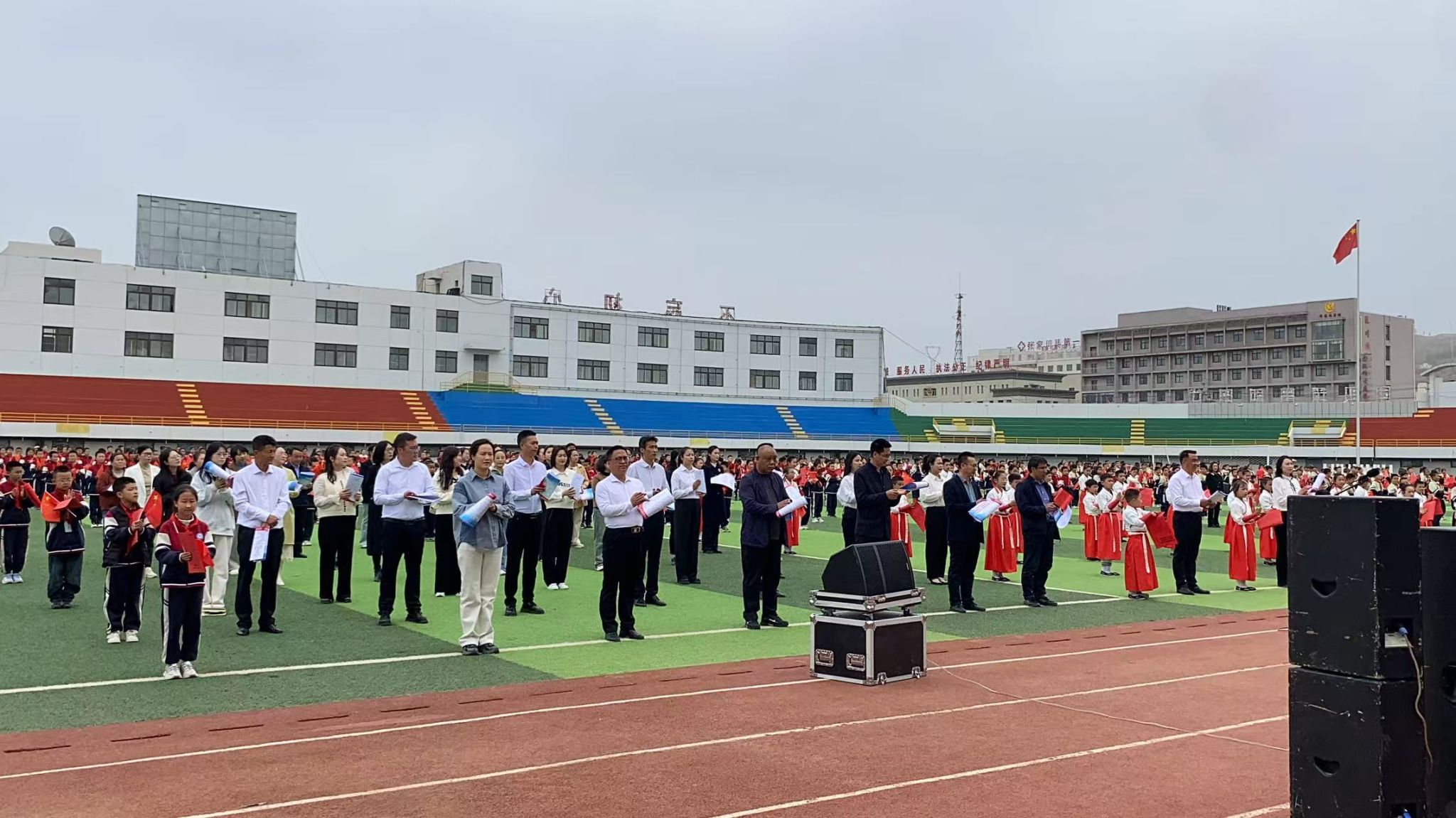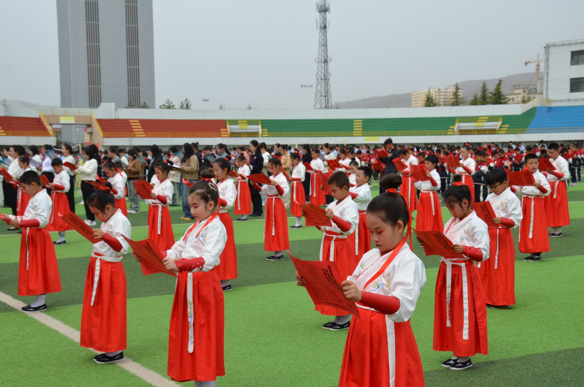 活动中,县新华书店向阿阳小学捐赠价值5000元的精品图书,涵盖文学、科普、历史等多个类别,为书香校园建设注入新动力。随后的经典诵读环节将活动推向高潮:60名师生代表以铿锵之声演绎《用读书点亮人生》,传统经典《劝学》的集体朗诵再现了中华文化的深厚底蕴,阿阳小学师生自编自演的诵读节目则展现了阅读与创新的融合。最后,全场齐唱《我和我的祖国》,用歌声抒发家国情怀。