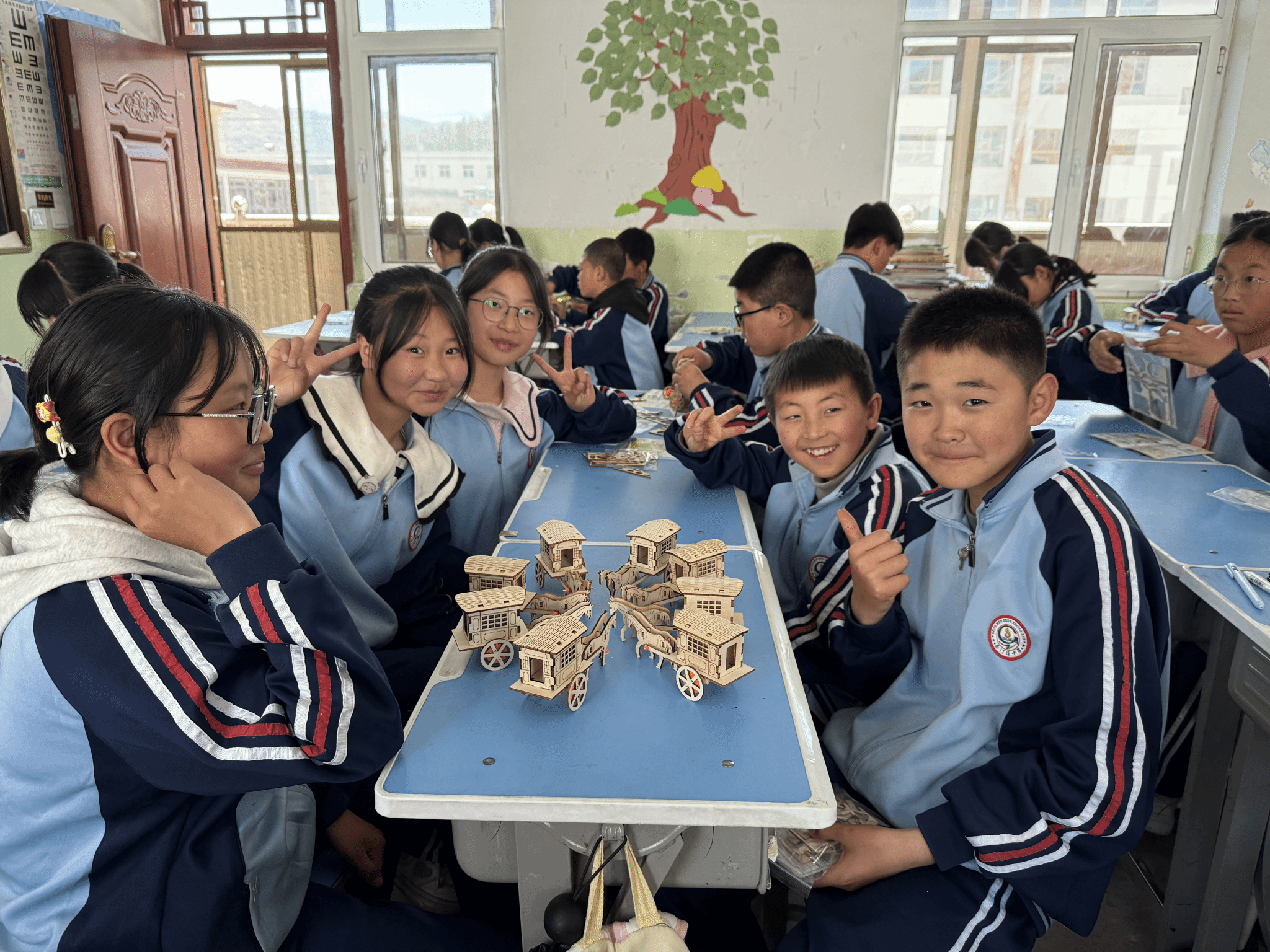 最令人期待的环节来了,同学们在老师的指导下,进行拼装木质马车模型,榫卯结构作为中国传统木工技艺的精髓,无需一钉一胶,却能实现零件间的紧密连接,在拼装过程中,同学们不仅能亲手感受古人的智慧,还能培养动手能力和团队协作精神,体会到完成一件作品的成就感。拼装完成后,同学们展示自己的作品,互相欣赏,交流拼装心得与体会,分享收获与乐趣。