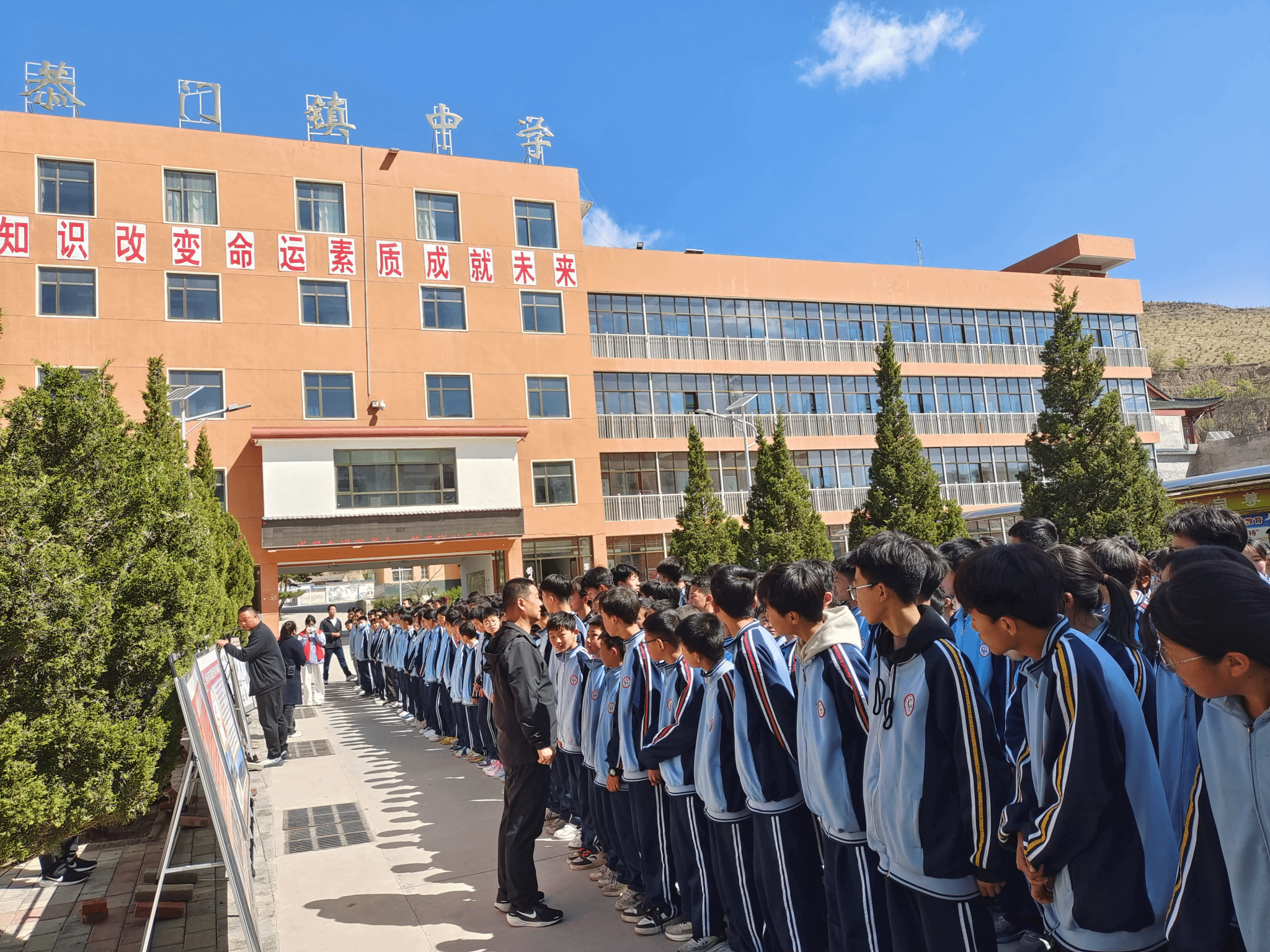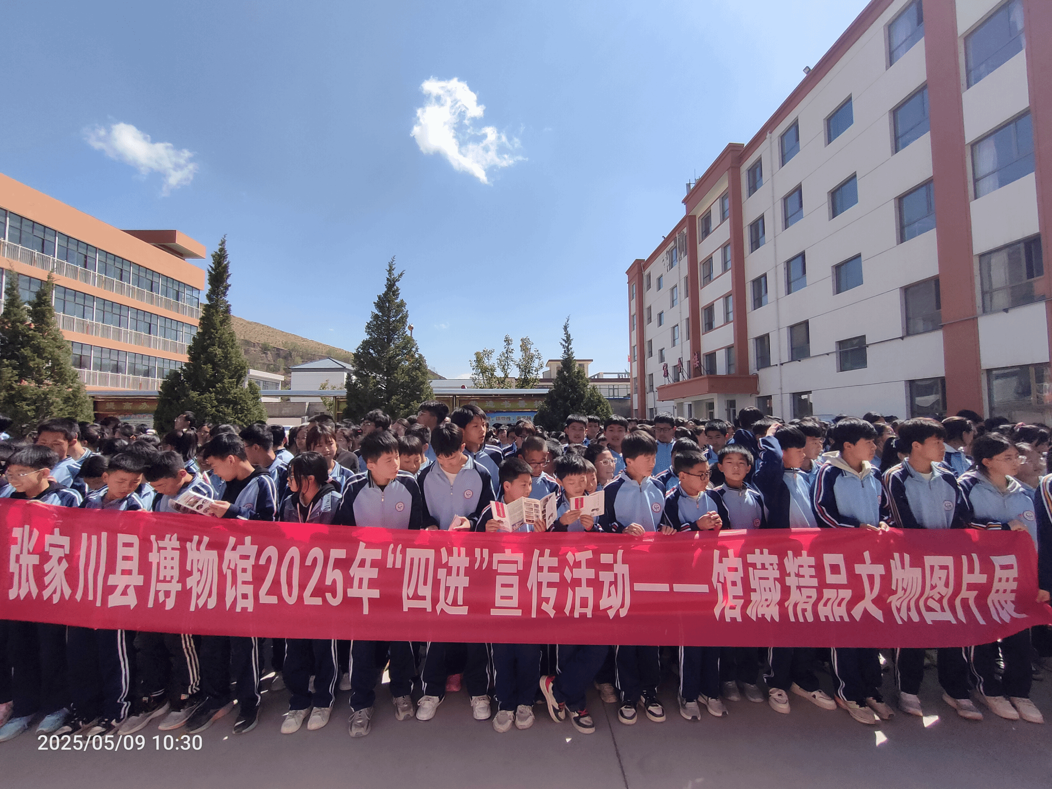 讲解员组织全校师生参观流动展览,通过一幅幅生动的图片、一段段详实的文字,向同学们展示张家川的悠久历史文化,让大家在校园中就能领略家乡深厚的历史底蕴,培养家国情怀,增强文化自信。