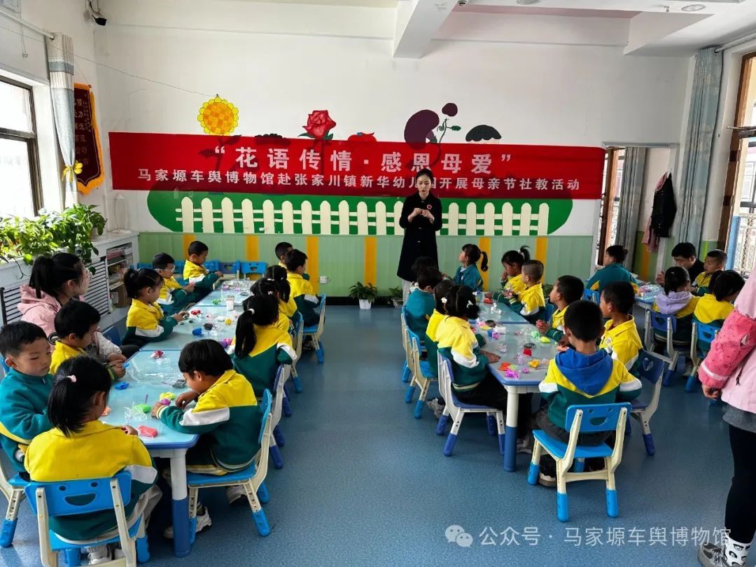 为弘扬中华传统孝亲文化,在母亲节来临之际,5月9日,马家塬车舆博物馆走进张家川镇新华幼儿园,开展了“花语传情•感恩母爱”彩色粘土手工花束制作社教活动。