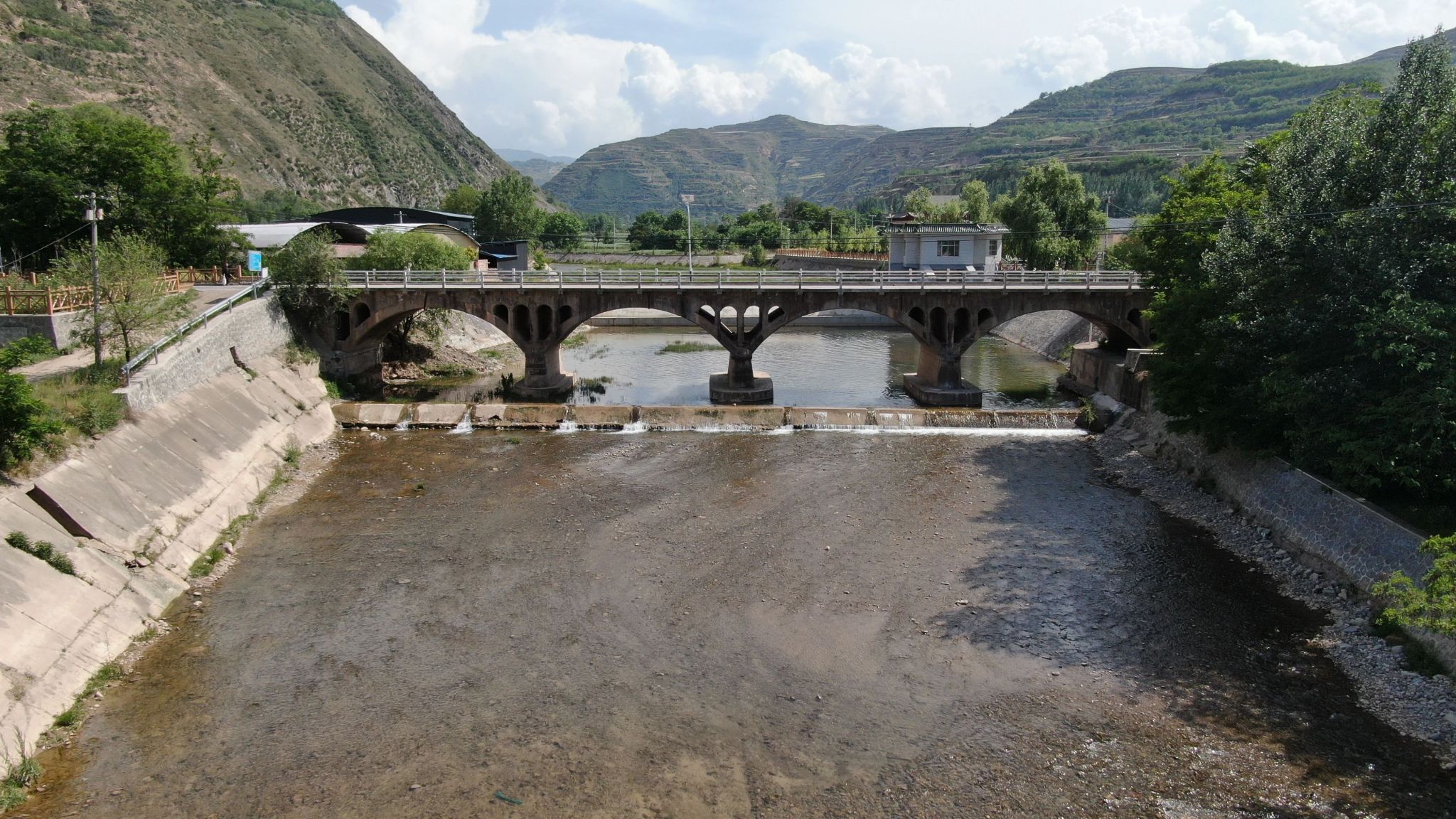 蓼阳胜利大桥,位于武山县洛门镇蓼阳村村口蓼阳水库旁,桥梁呈东西走向,横跨于南北走向的大南河上,据桥西头所立胜利大桥落成纪念石碑所记,为1956年12月竣工告成。大桥为四孔拱券式桥,现存桥梁于1980年使用混凝土翻新加固,由桥面、栏杆、拱券及孔洞组成,栏杆高1米,桥长66米。蓼阳胜利大桥是新中国“一五计划”时期地区基础设施建设、大南河流域经济社会发展的重要见证,为武山县第四次全国文物普查新发现之一。
