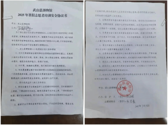 开班式上,宣读了《博物馆志愿者服务章程》,工作人员详细阐述了志愿者的权利与义务,让志愿者们对即将参与的志愿服务有了清晰的认知;同时,还对培训期间工作纪律以及其它需要注意的事项作了强调说明,与家长签订了《培训安全责任书》,严明了纪律要求,明确了双方责任,为保障培训质量成效和学员安全奠定了基础。