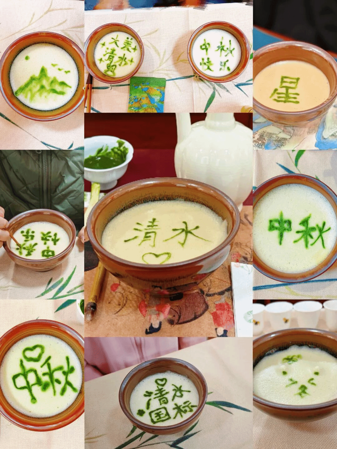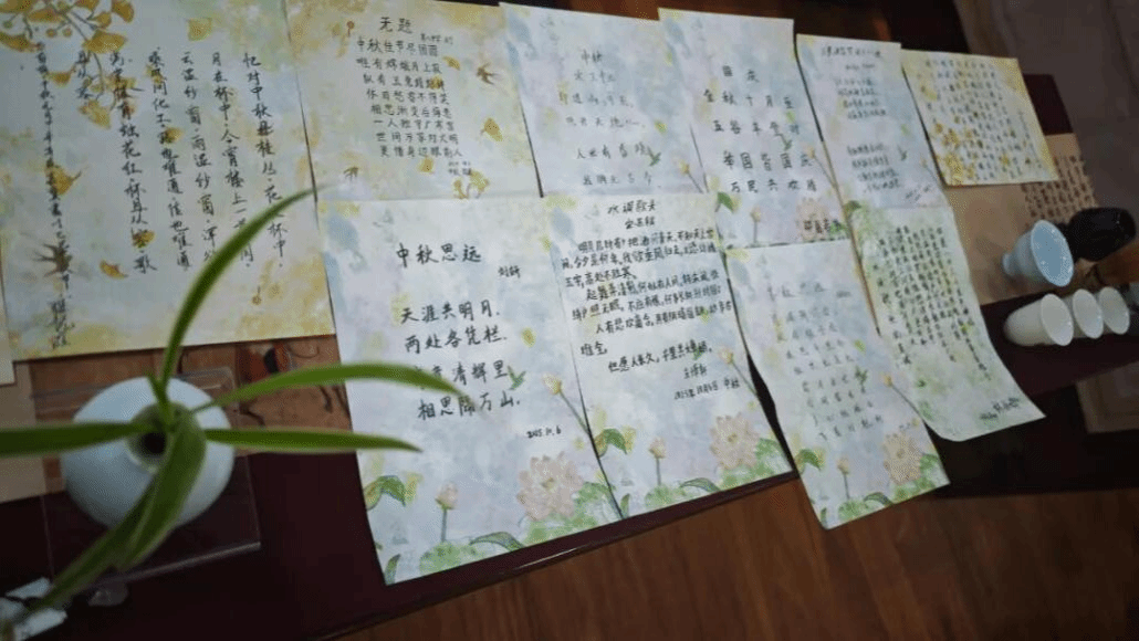 体验在茶沫上作画的“茶百戏”(又称水丹青),这一独特的技艺,不仅是宋代文人雅趣的体现,更象征着中华文化的包容与创新精神。鼓励孩子们发挥想象力,在茶汤上绘出“明月”等图案,现场撰写与国庆和中秋节应景的诗词,表达对家国团圆的美好祝愿。