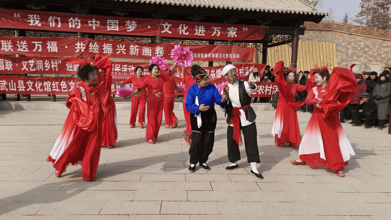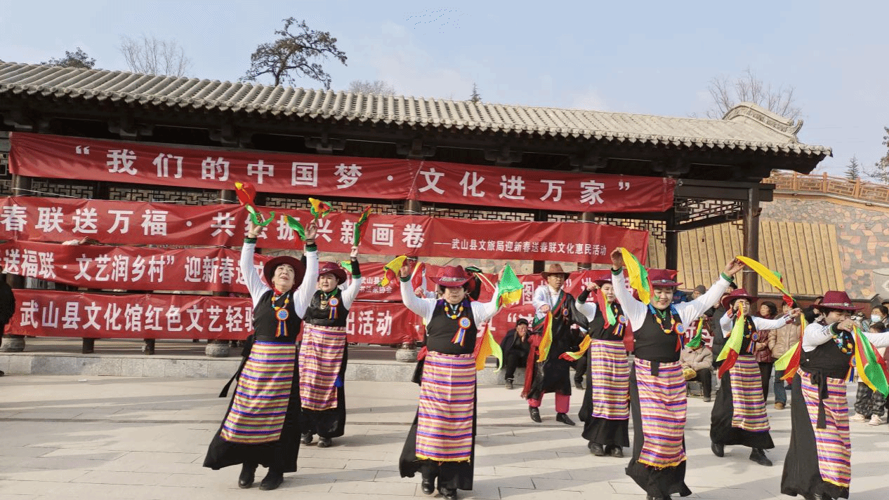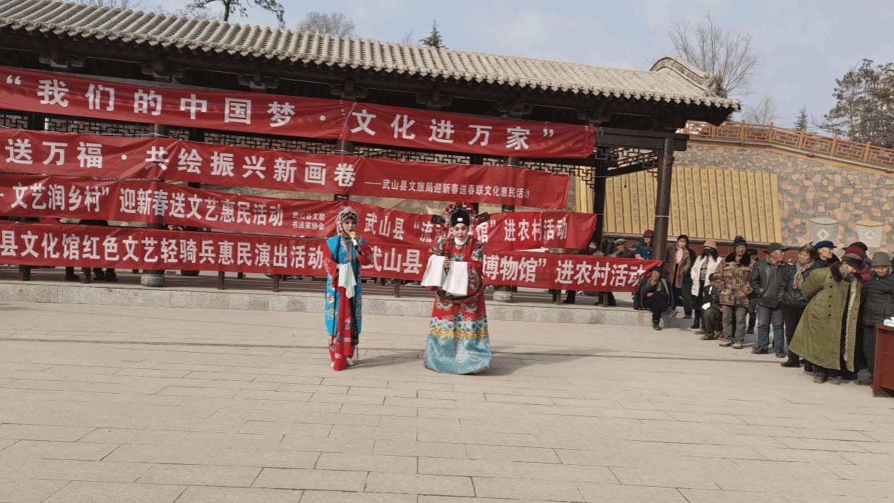 新春将至,年味渐浓。近日,武山县文化馆组织的“我们的中国梦·文化进万家”红色文艺轻骑兵文化惠民演出活动在洛门镇龙泉村启幕,将精彩的文艺演出和浓浓的新春祝福送到群众家门口,让基层群众在家门口尽享文化年味,共迎新春佳节。