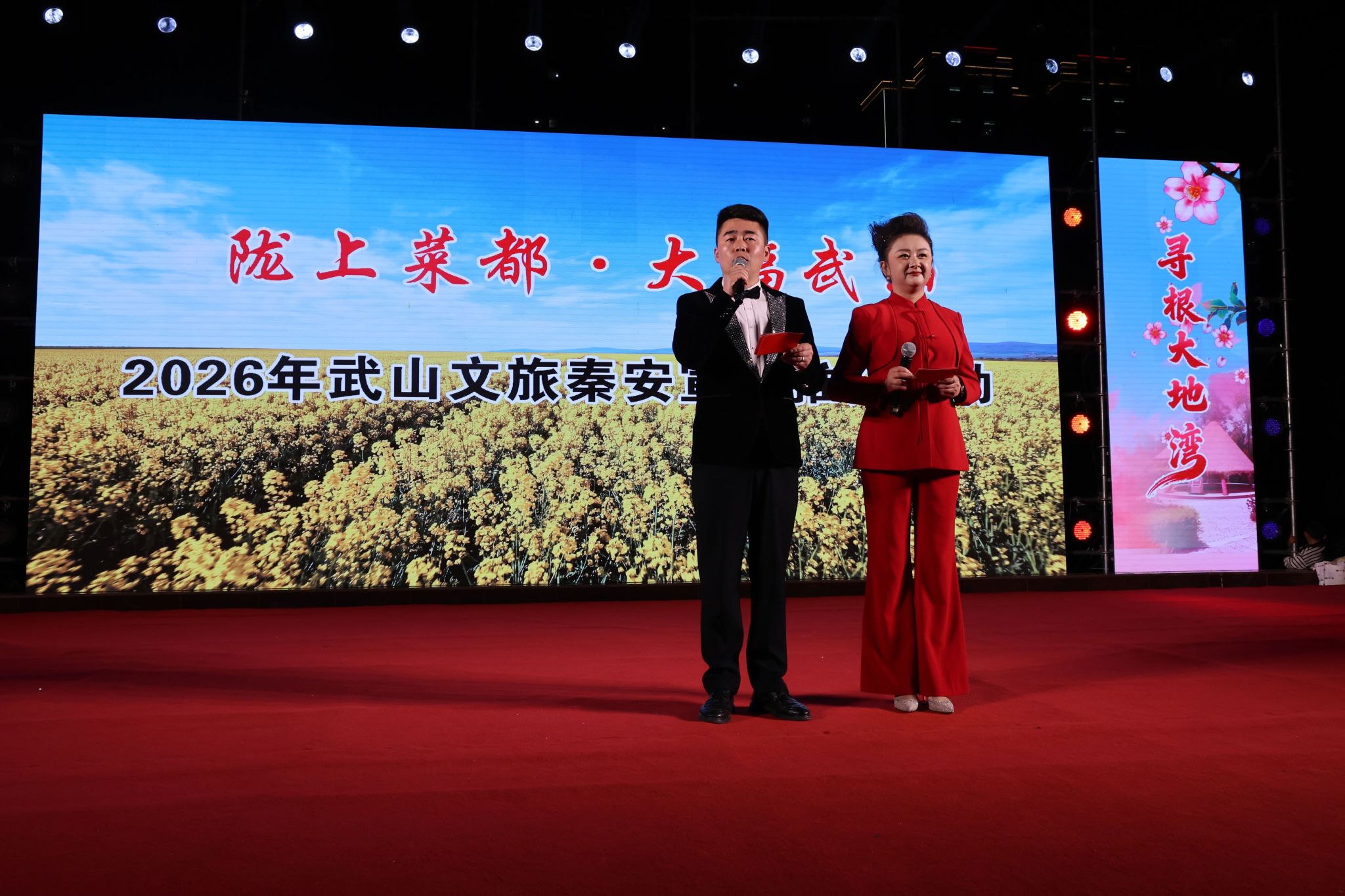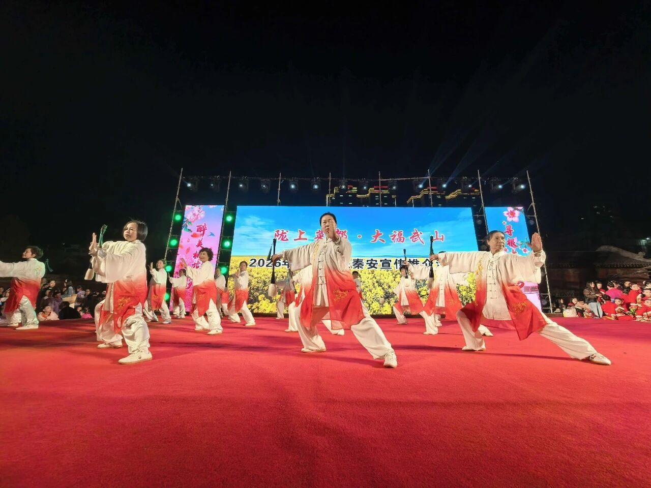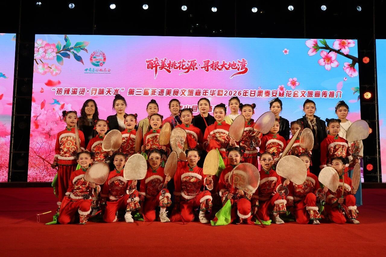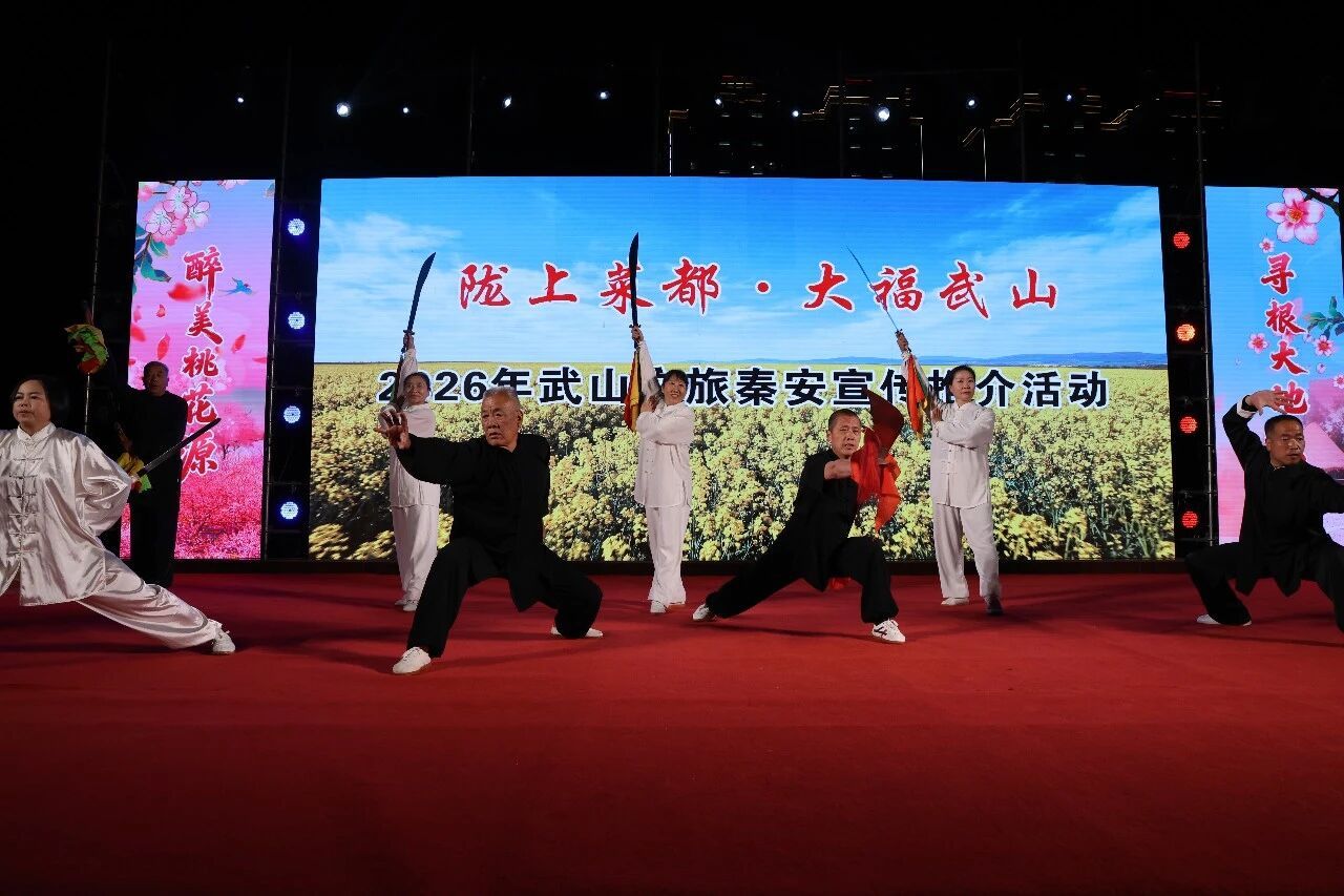 鼓舞娲乡,艺韵飞扬。4月11日晚,秦安县兴国文化广场鼓声激越,舞姿翩翩,艺彩飞扬,武动全场。2026年“桃花灼灼·翩翩秦安”天水市非遗节目展演——“陇上菜都·大福武山”武山县文旅秦安宣传推介活动倾情进行。