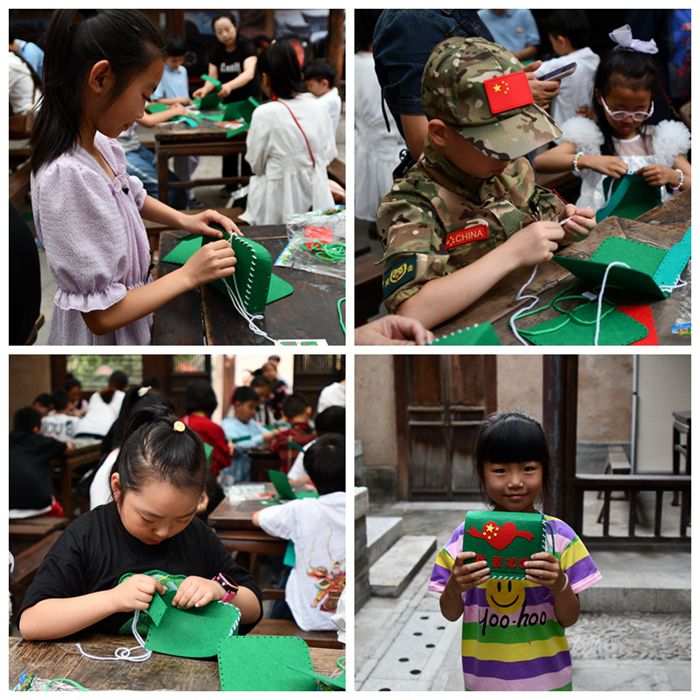 活动伊始,社教专员通过PPT课件图片、文字,依托大革命历史背景为同学们讲述了中国共产党在天水地区的革命历史事件和奋斗历程。党的百年征程波澜壮阔,百年初心历久弥坚。红船劈波而行、百年风雨兼程,我们今天的幸福生活是无数共产党员与仁人志士前赴后继、踏破荆棘、艰苦奋斗而来的。青少年在学习过程中了解到我们天水地区一些早期共产党员的革命事迹深有感触,激发了同学们对党、对祖国浓浓的热爱之情。而在革命历史文物中绿军包则是老一代革命家的象征,是年轻人对老一代革命家的尊崇,也是红色精神的传承,所以社教专员特意准备了绿军包手工材料分发给每一位同学,拿到材料包后同学们便积极地投身到制作中。他们按照社教专员介绍的制作步骤,裁好用料大小,分块、穿针、引线、缝制、系带......通过一系列认真操作,一个个小小绿军包便出现在大家眼前,同学们赶紧把自己的作品挎在肩上,仿佛就是一个个小小红军队员,脸上洋溢着对英雄先辈的敬仰和作为中华儿女的骄傲之情,美好而幸福的时刻瞬间被定格在相机中。