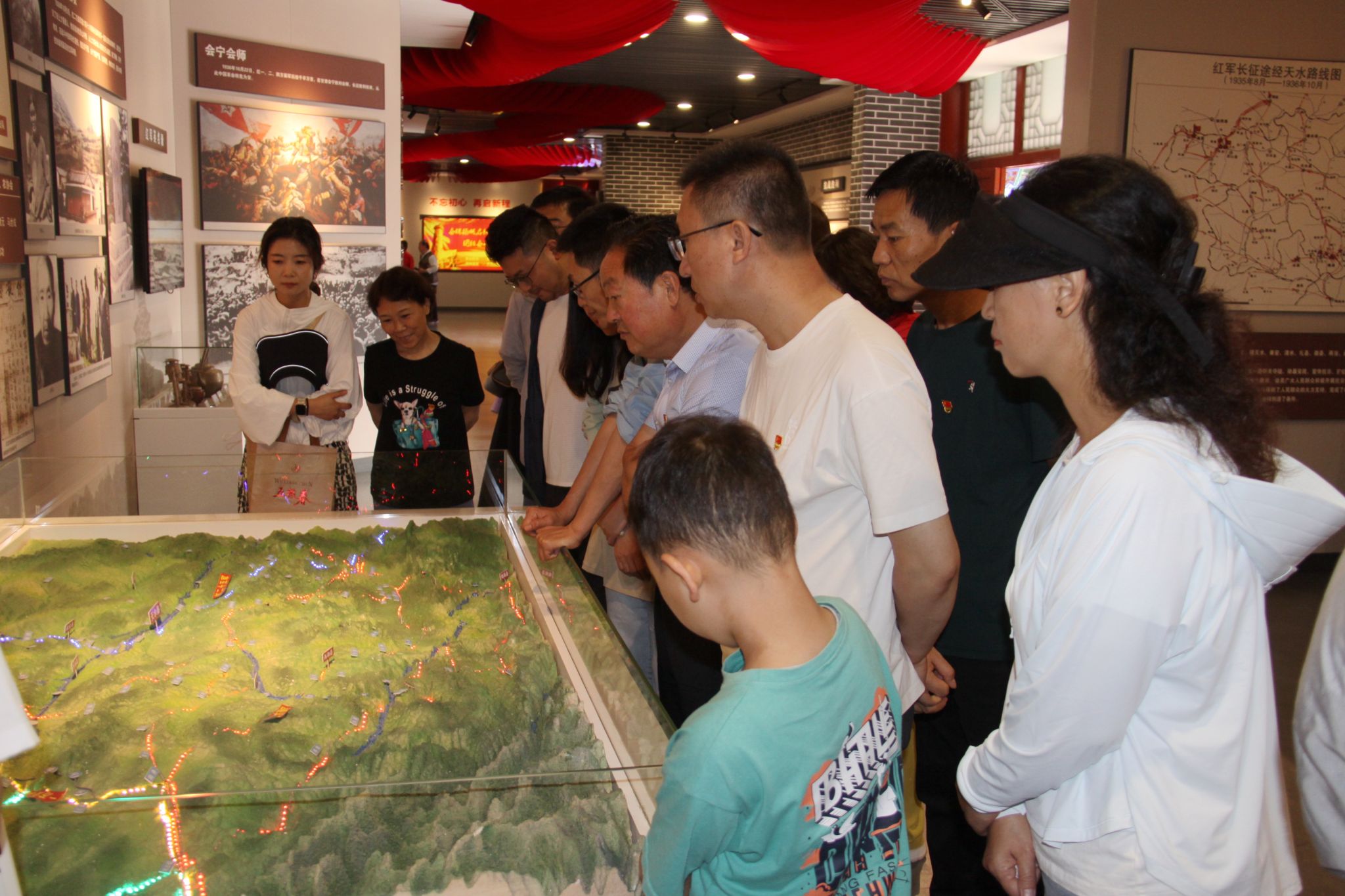 在天水大革命历史纪念馆,馆支部书记周涛带领全体党员重温了入党誓词,用高举的右手再次坚定了对党忠诚的信念和为人民服务的使命。全体党员通过参观图片展板、艺术雕塑、历史遗物,真切了解了天水革命艰苦卓绝的道路,还原了先辈们不屈不挠斗争的历史画卷。通过讲解,一同回忆了五四运动前后,以葛霁云等为代表的天水籍人士,积极参加反帝反封建的革命斗争的过程,他们壮大党员队伍,成立“天水学会”,创办《新时代》季刊,传播马列主义,兴办军官讲习所,成立“同乡会”,发动农民运动。点燃了天水革命运动的星星之火。全体党员认真聆听,互动交流,通过生动直观的模式,接受了一场最直接的主题教育。