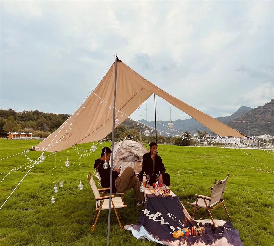 精品露营套餐:1天幕1帐篷2台8凳 ¥588元/6小时(适合10人以上使用)